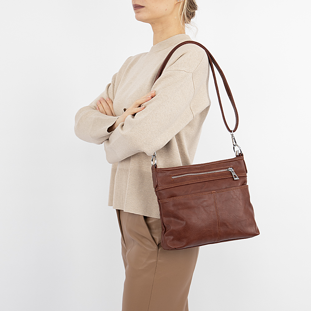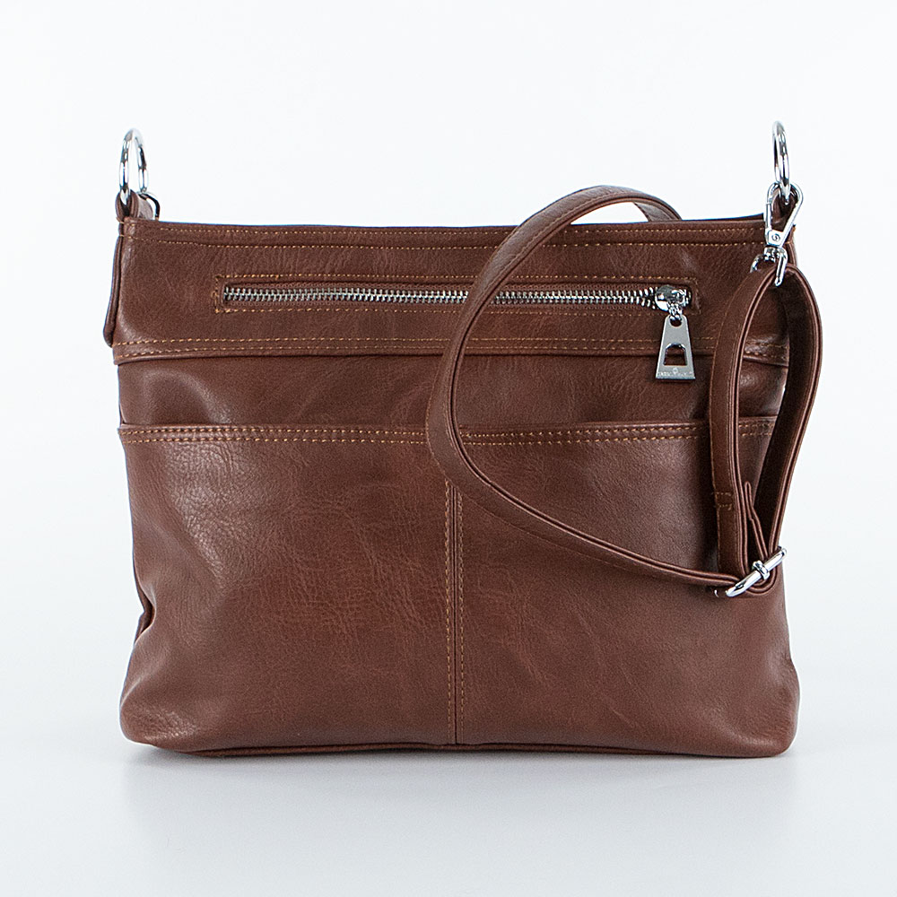Сумка от торговой марки Passo Avanti выполнена из искусственной кожи белого цвета. Квадратная модель со съемной ручкой и съемным регулируемым плечевым ремнем. Отделение на молнии. Внутри: текстильная подкладка, средник и карман на молнии, накладной карман. На передней стороне – два кармана на молнии – прорезной и накладной. На задней – карман на молнии. Сумку можно носить через плечо.