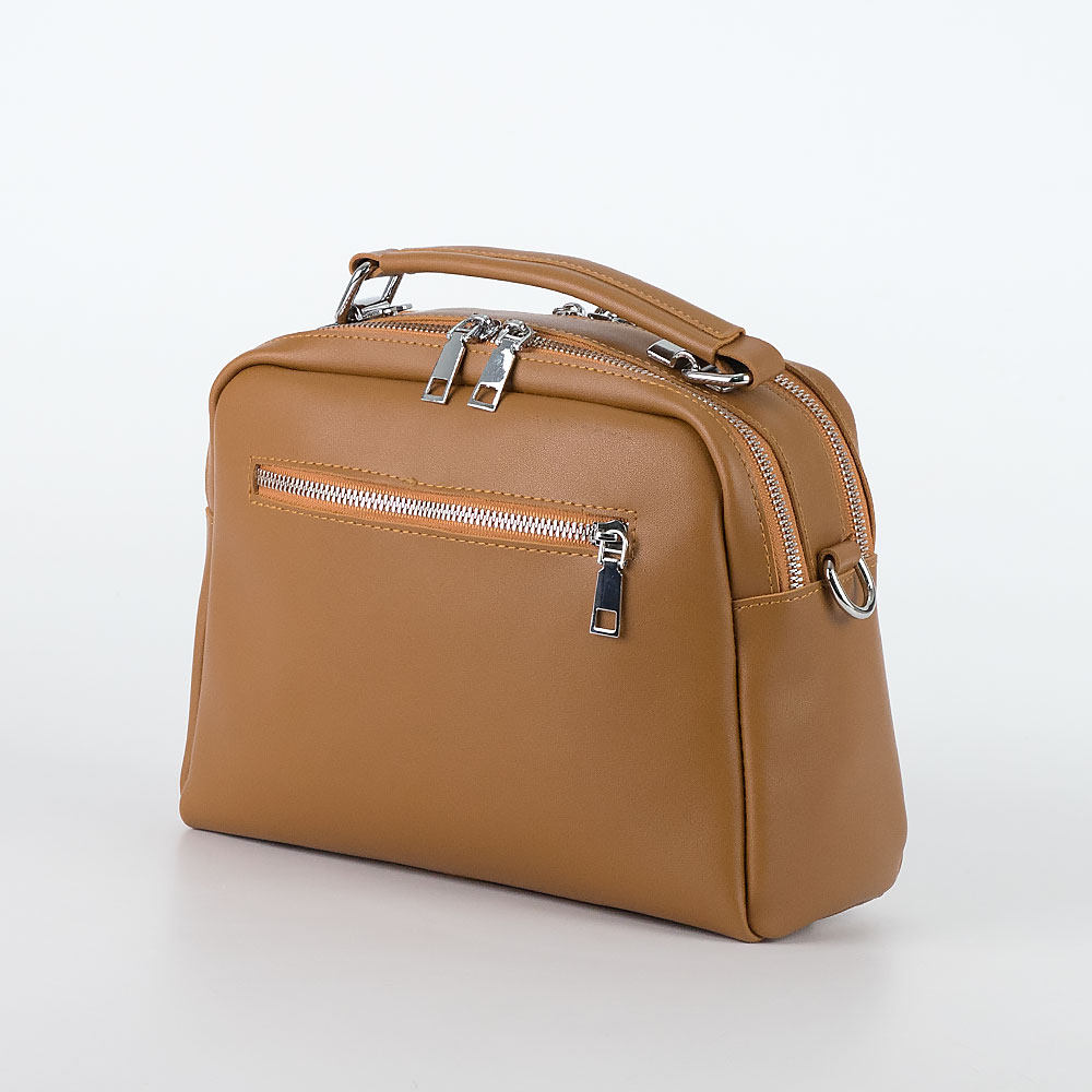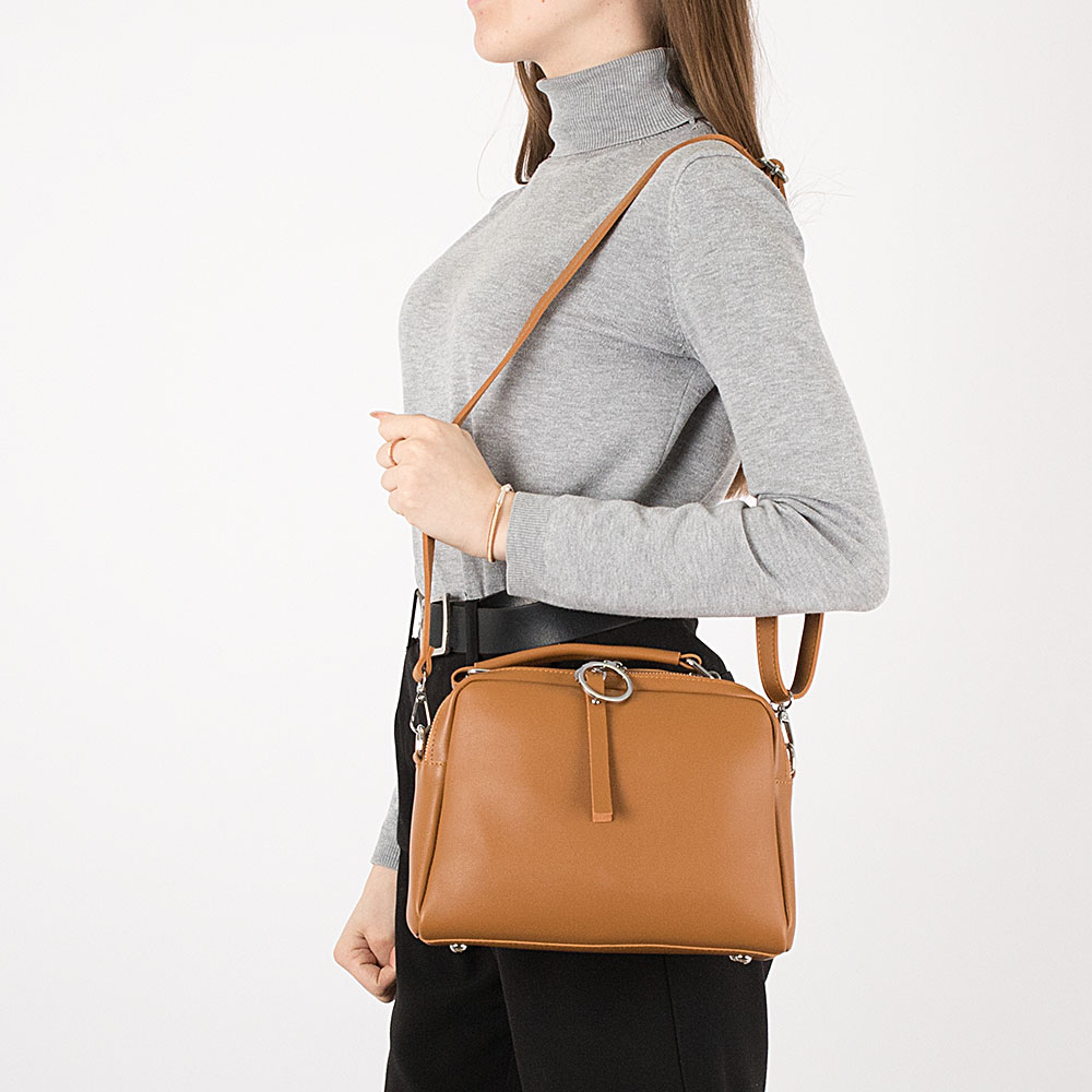 Сумка от торговой марки Passo Avanti из искусственной кожи цвета camel. Модель в форме купола со съемным регулируемым плечевым ремнем. Отделение с двумя молниями. Внутри: текстильная подкладка, перегородка и карман на молнии, накладной карман. На задней стороне – карман на молнии. Дно сумки оснащено металлическими ножками для защиты от износа.