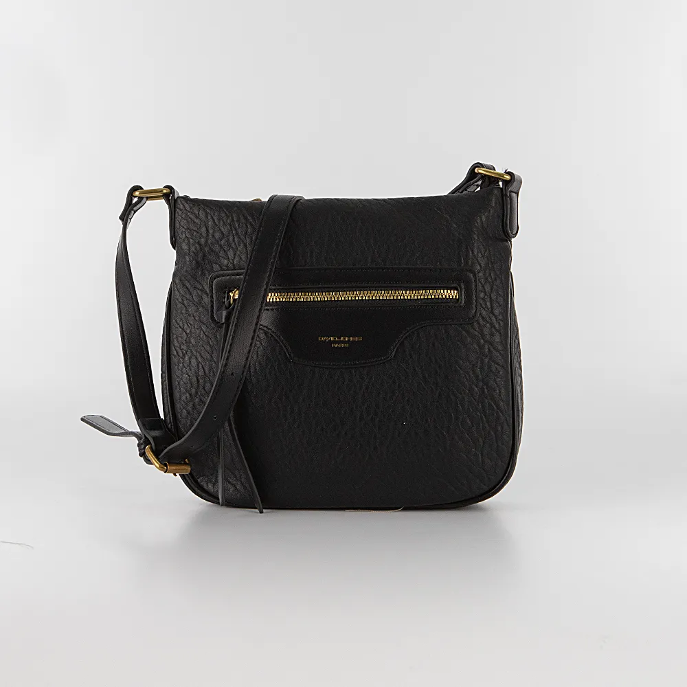 Сумка от торговой марки David Jones из искусственной кожи в черном цвете. Плоская модель кросс-боди со съемным регулируемым плечевым ремнем. Отделение на молнии. Внутри: фирменная подкладка, карман на молнии, накладной карман. На лицевой и задней сторонах – карман на молнии.