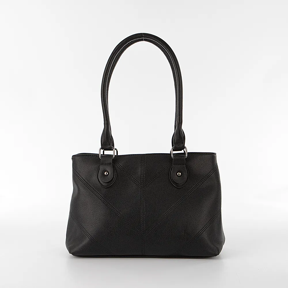 Сумка от торговой марки Passo Avanti из искусственной кожи черного цвета. Лицевая сторона декорирована отстрочкой «елочкой». Компактная модель среднего размера с двумя удлиненными ручками. Два отделения на молнии, с текстильной подкладкой. В одном отделении – карман на молнии, в другом – накладной карман. На задней стороне – карман на молнии.