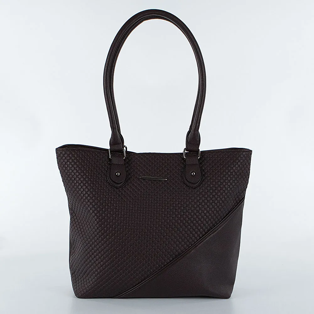 Сумка от торговой марки Passo Avanti из искусственной кожи коричневого цвета. Лицевая сторона декорирована узорным тиснением. Модель с двумя удлиненными ручками. Два отделения на молнии, с текстильной подкладкой. В одном из отделений – карман на молнии, в другом – накладной карман. На задней стороне – карман на молнии.