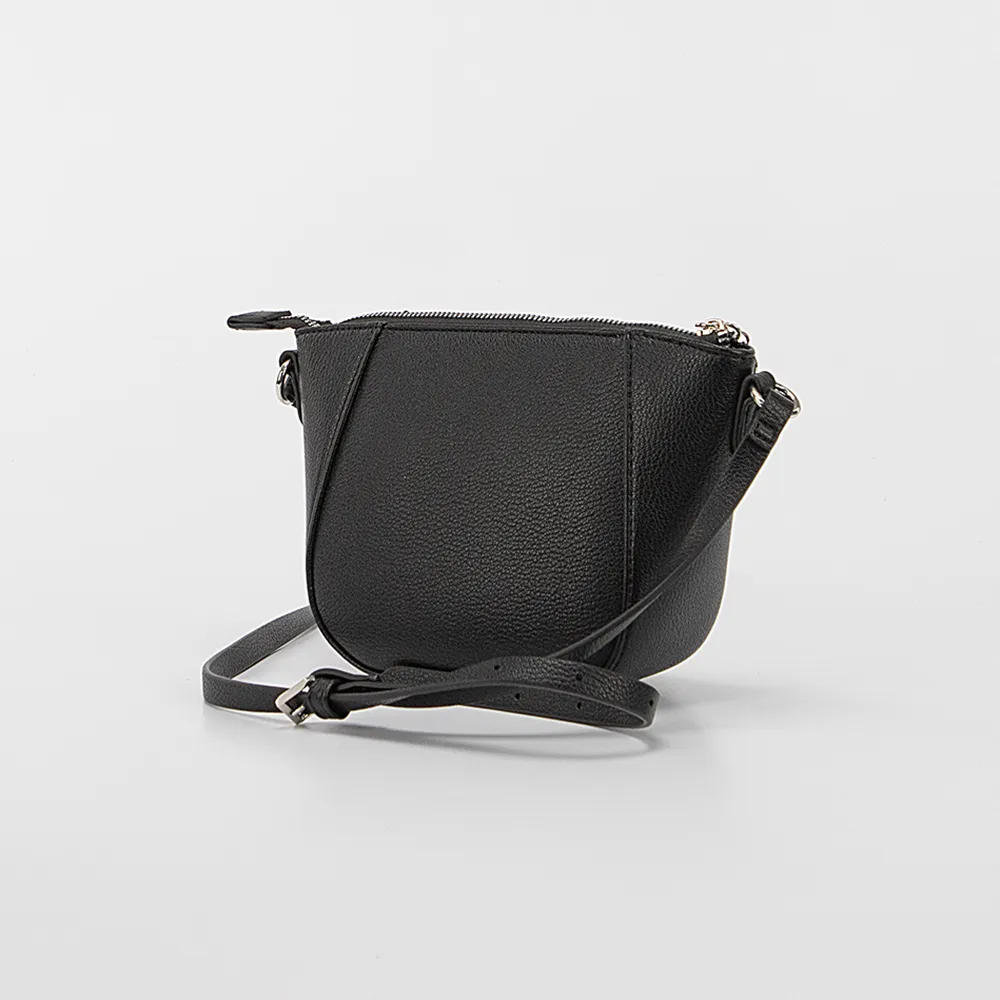 Сумка от торговой марки David Jones из искусственной кожи черного цвета. Модель со съемным регулируемым плечевым ремнем. Отделение на молнии. Внутри: фирменная подкладка, карман на молнии, накладной карман.