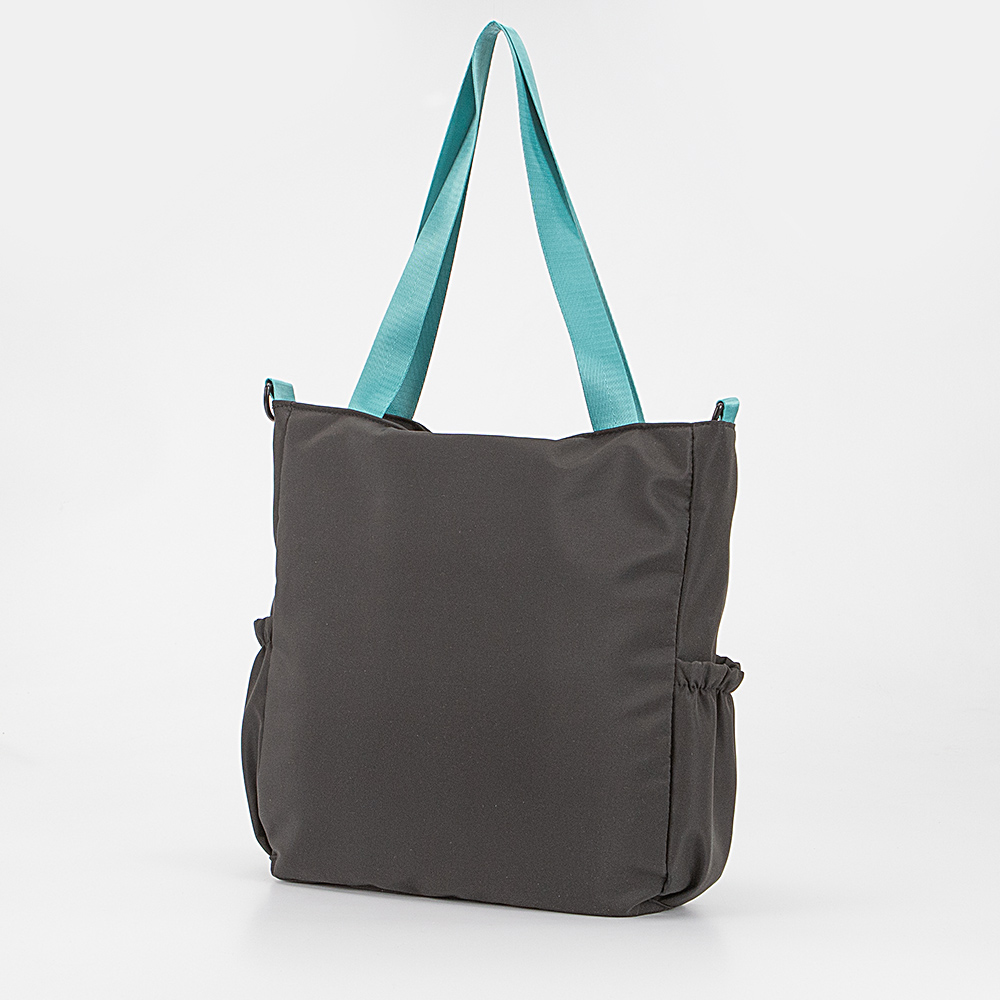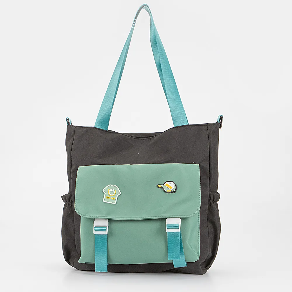 Сумка от торговой марки Passo Avanti из текстильного материала в сочетании черного и зеленого цвета. Модель с двумя удлиненными ручками, съемным регулируемым плечевым ремнем. Отделение на молнии. Внутри: текстильная подкладка, два накладных кармана. На лицевой стороне – накладной карман с застежками фастекс; декорирован прорезиненными нашивками. По бокам – накладной карман на резинке.