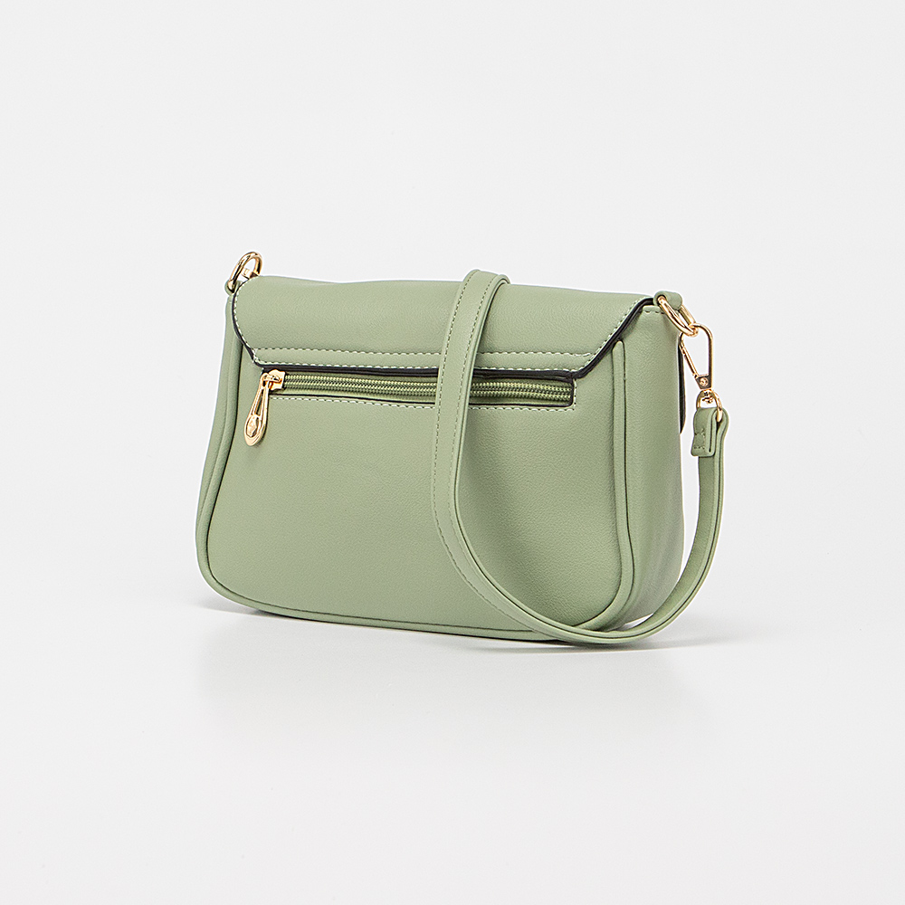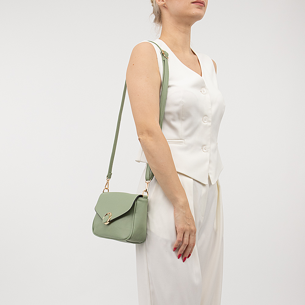 Сумка от торговой марки Passo Avanti из искусственной кожи мятно-зеленого цвета. Модель со съемным регулируемым плечевым ремнем. Закрывается клапаном на магнитной кнопке. Отделение на молнии. Внутри: текстильная подкладка, средник и карман на молнии, накладной карман. На задней стороне – карман на молнии.