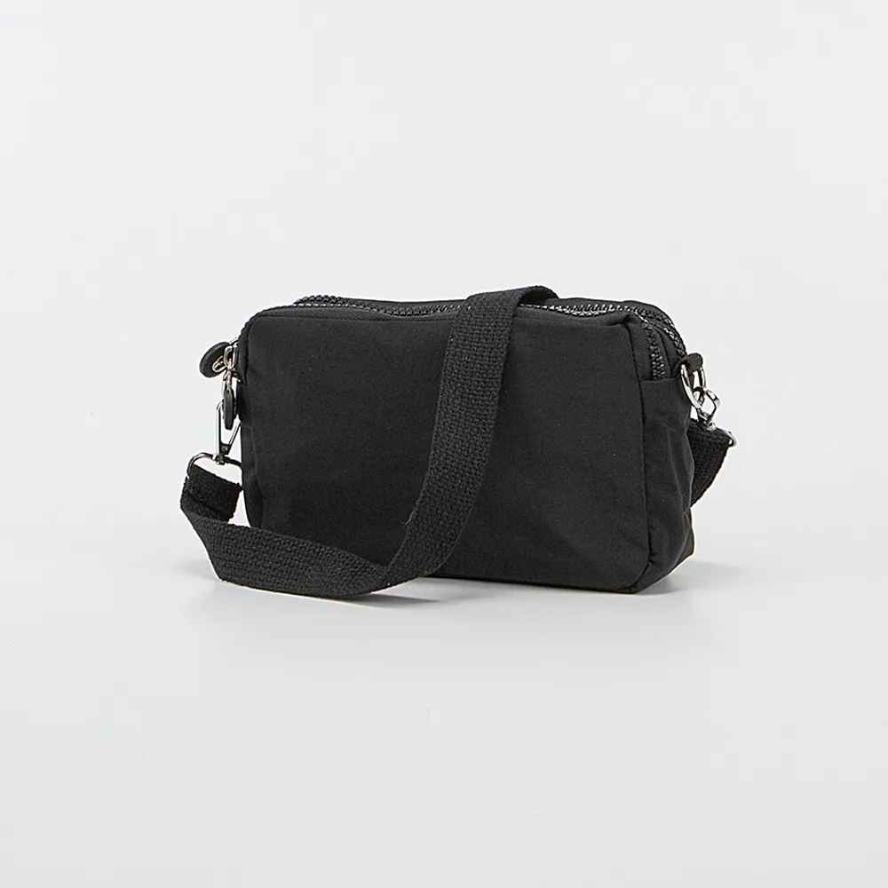 Сумка-планшет от торговой марки Valigetti из практичного текстильного материала черного цвета. Модель со съемным регулируемым плечевым ремнем и съемным ремешком для запястья. Три отделения на молнии, с текстильной подкладкой.