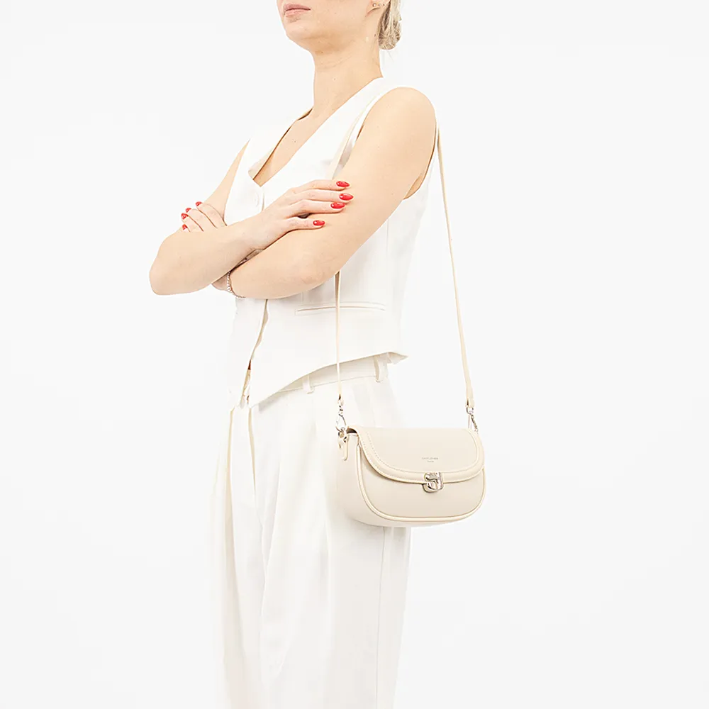 Сумка от торговой марки David Jones из искусственной кожи бежевого цвета. Модель со съемным регулируемым плечевым ремнем. Закрывается клапаном на магнитной кнопке. Отделение на молнии. Внутри: фирменная подкладка, карман на молнии, накладной карман.
