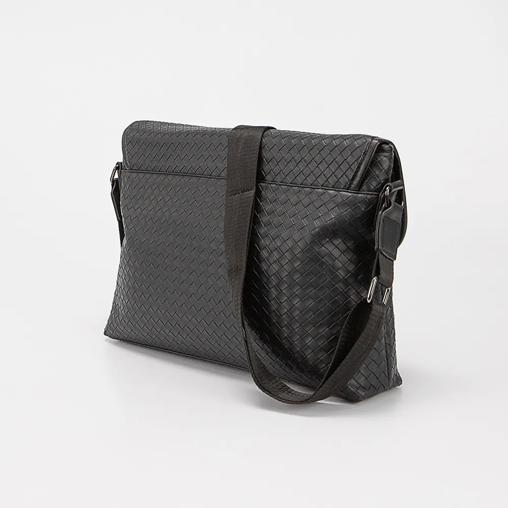 Сумка-планшет от торговой марки Valigetti из искусственной кожи черного цвета с тиснением под плетение. Модель с несъемным регулируемым плечевым ремнем, выполненным из текстильного материала. Закрывается клапаном на застежке фастекс. Отделение на молнии. Внутри: текстильная подкладка, карман на молнии.