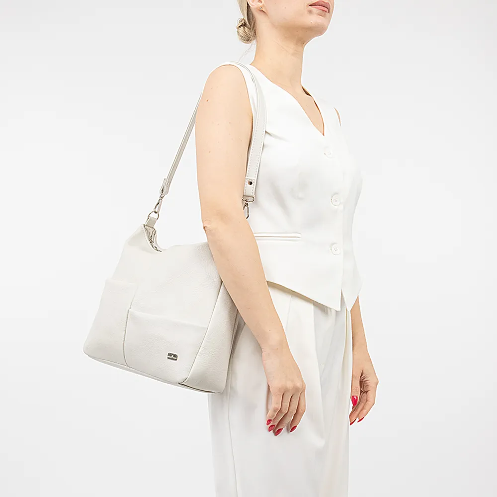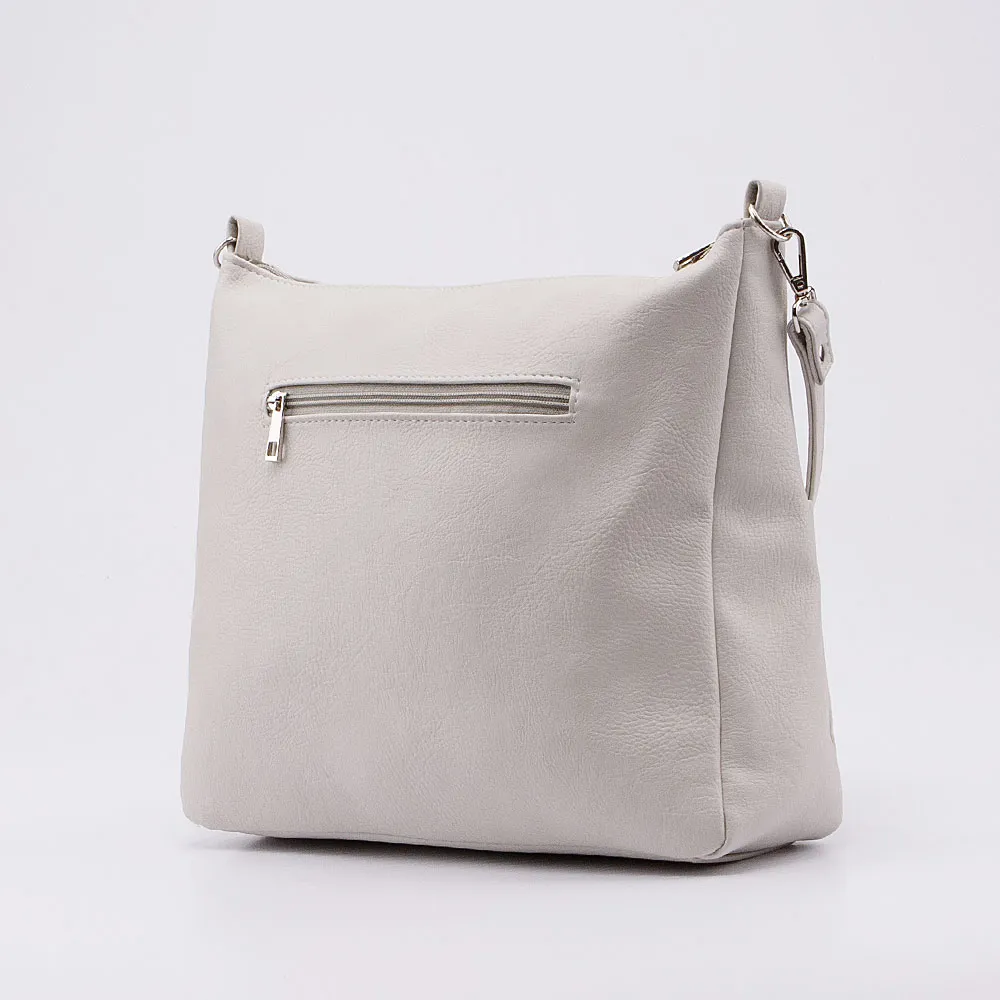 Сумка от торговой марки Passo Avanti из искусственной кожи серого цвета. Модель с одной съемной ручкой. Отделение на молнии. Внутри: текстильная подкладка, карман на молнии, накладной карман. На лицевой стороне – два накладных кармана. На задней стороне – карман на молнии.