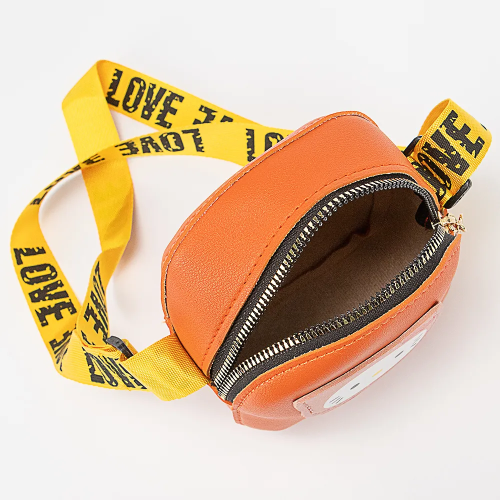 Детская сумочка от торговой марки Passo Avanti из искусственной кожи оранжевого цвета. Лицевая сторона декорирована аппликацией в виде котенка. Модель с широким ярким несъемным регулируемым плечевым ремнем из текстильного материала с текстовым принтом. Отделение на молнии; без подкладки.