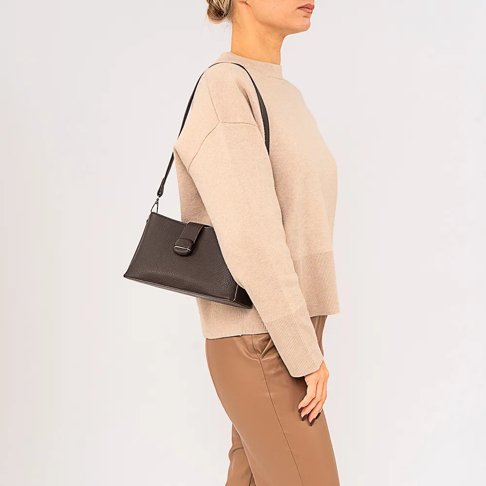 Сумка от торговой марки Passo Avanti из искусственной кожи кофейного цвета. Модель с удлиненной съемной ручкой, съемным регулируемым плечевым ремнем. Закрывается хлястиком на магнитной кнопке. Отделение на молнии. Внутри: текстильная подкладка, карман на молнии.