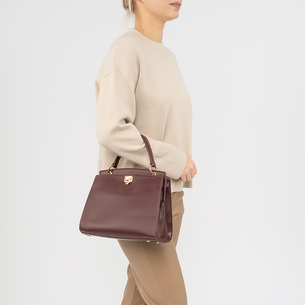 Сумка от торговой марки David Jones из искусственной кожи бордового цвета. Модель с одной ручкой и съемным регулируемым плечевым ремнем. Два отделения, с фирменной подкладкой. Переднее отделение закрывается откидным замком. Основное отделение на молнии. Внутри: карман на молнии. Дно оснащено металлическими ножками для защиты от износа.