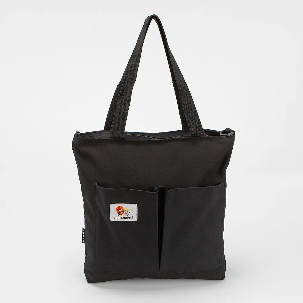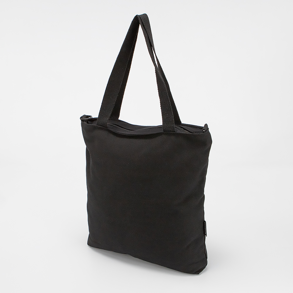 Сумка-шоппер от торговой марки Ecotope из плотного практичного текстильного материала черного цвета. Модель с двумя удлиненными ручками и съемным регулируемым плечевым ремнем. Отделение на молнии. Внутри: накладной карман. На лицевой стороне – два накладных кармана без застежки.