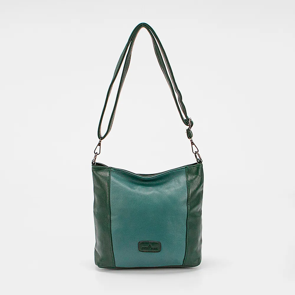 Сумка от торговой марки Passo Avanti из искусственной кожи в сочетании оттенков зеленого цвета. Модель со съемным регулируемым плечевым ремнем. Отделение на молнии. Внутри: текстильная подкладка, карман на молнии, два накладных кармана. На задней стороне – карман на молнии.