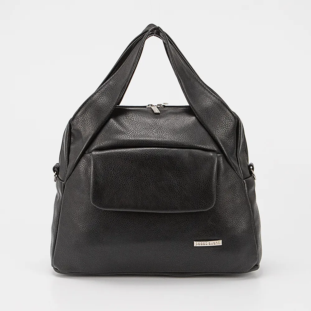 Сумка от торговой марки Passo Avanti из искусственной кожи кофейного цвета. Модель с двумя широкими ручками и съемным регулируемым плечевым ремнем. Отделение на молнии. Внутри: карман на молнии, два накладных кармана. На задней стороне – карман на молнии.