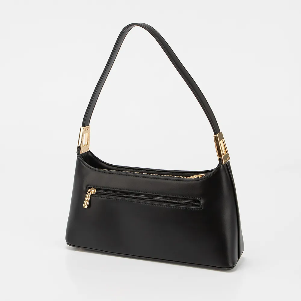 Сумка от торговой марки David Jones из искусственной кожи черного цвета. Модель с удлиненной ручкой, съемным регулируемым плечевым ремнем. Отделение на молнии. Внутри: фирменная подкладка, карман на молнии и накладной карман. На задней стороне – карман на молнии. Дно оснащено металлическими ножками для защиты от износа.
