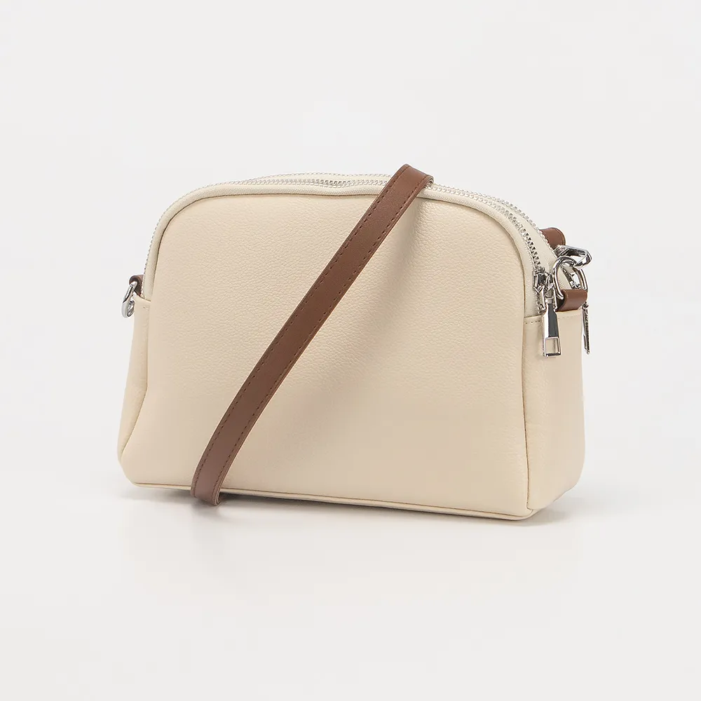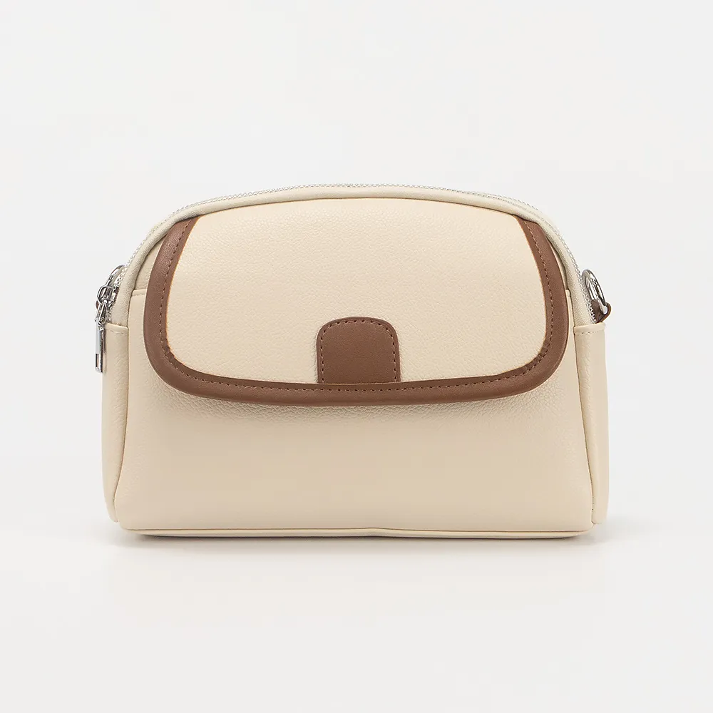 Сумка от торговой марки Passo Avanti из искусственной кожи бежевого цвета с коричневыми элементами. Модель со съемным регулируемым плечевым ремнем. Два отделения на молнии, с текстильной подкладкой. В заднем отделении - карман на молнии. На лицевой стороне - накладной карман с клапаном на магнитной кнопке.