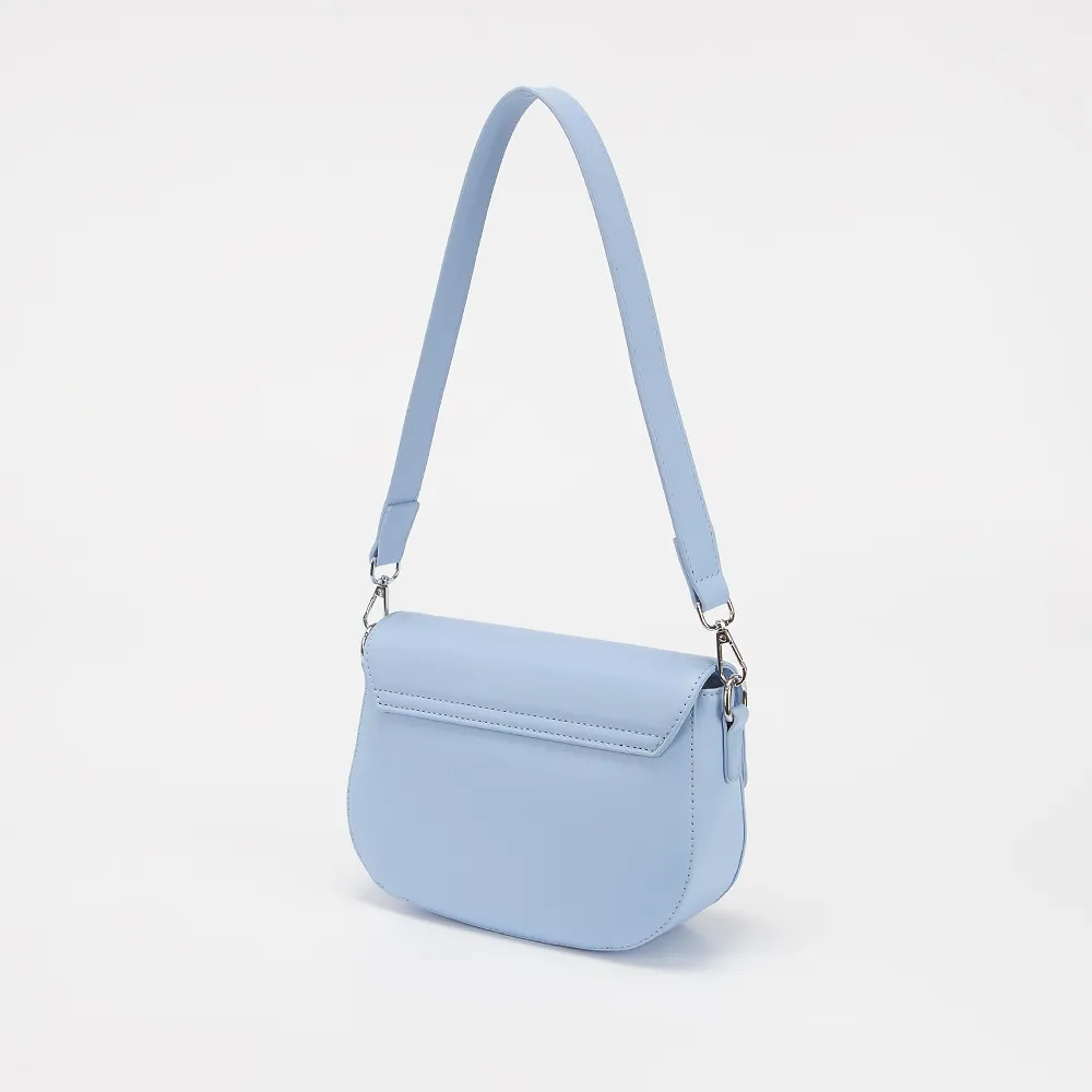 Сумка от торговой марки Passo Avanti из искусственной кожи голубого цвета. Модель с длинной съемной ручкой и съемным регулируемым плечевым ремнем. Закрывается клапаном на магнитной кнопке. Отделение на молнии, внутри текстильная подкладка.