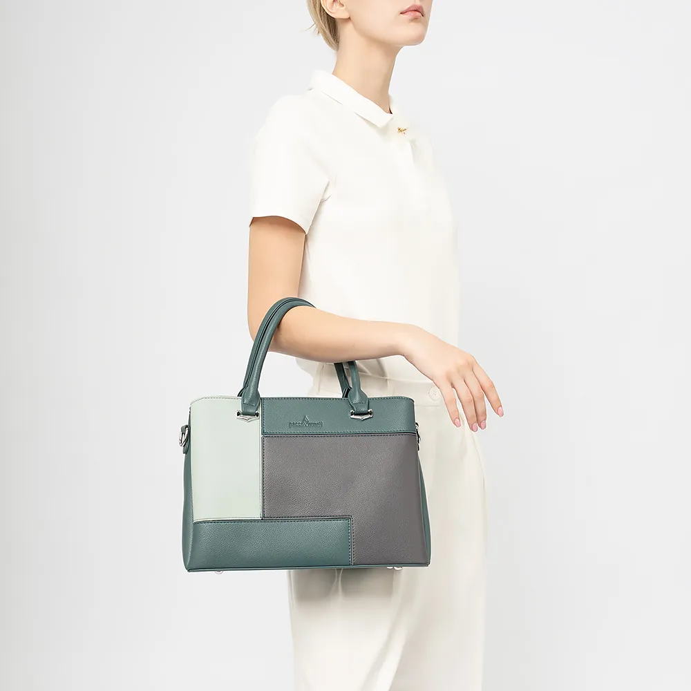 Сумка от торговой марки Passо Avanti из искусственной кожи голубого цвета. Модель с двумя ручками и съемным регулируемым плечевым ремнем, декорирована вставками контрастного цвета. Отделение на молнии закрывает три отсека. Внутри: текстильная подкладка, карман на молнии, накладной карман. На задней стороне - карман на молнии. Дно оснащено металлическими ножками для защиты от износа.