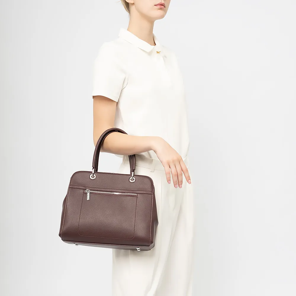 Сумка от торговой марки Passo Avanti из искусственной кожи коричневого цвета. Модель с двумя ручками и съемным регулируемым плечевым ремнем. Отделение на молнии: текстильная подкладка, средник и карман на молнии, два накладных кармана. На лицевой стороне и задней сторонах - карман на молнии. Дно оснащено металлическими ножками для защиты от износа.