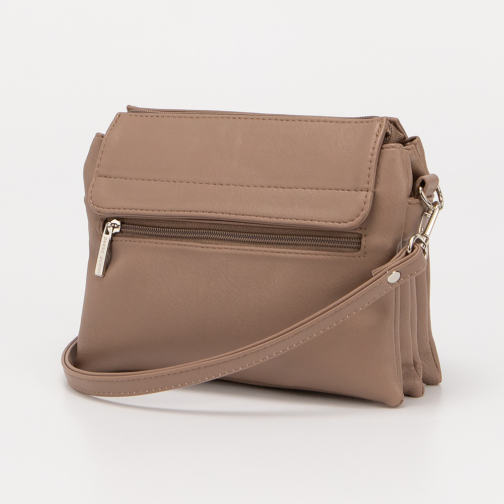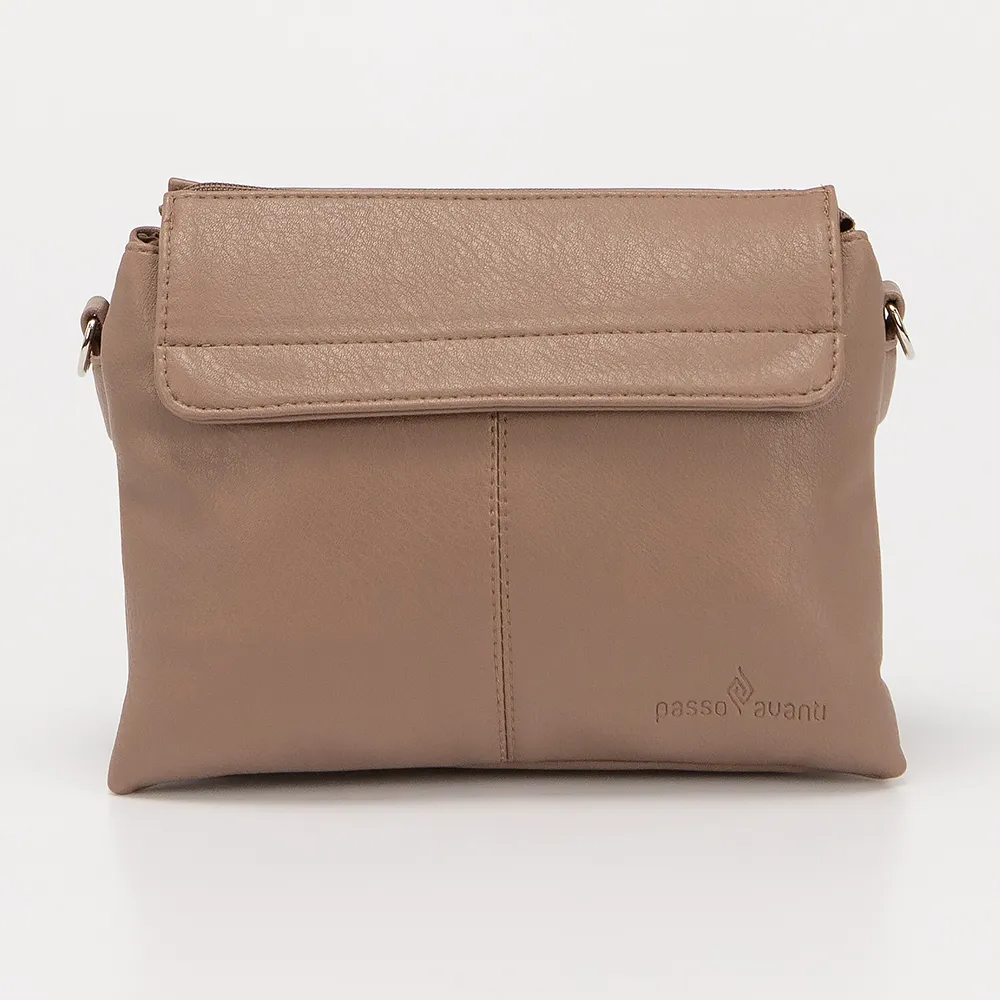 Сумка-клатч от торговой марки Passo Avanti из искусственной кожи кофейного цвета. Модель со съемным регулируемым плечевым ремнем. Закрывается молнией. Внутри: три отделения с текстильной подкладкой, среднее отделение на молнии, в заднем отсеке - два накладных кармана, в переднем - карман на молнии. На задней стороне - карман на молнии.