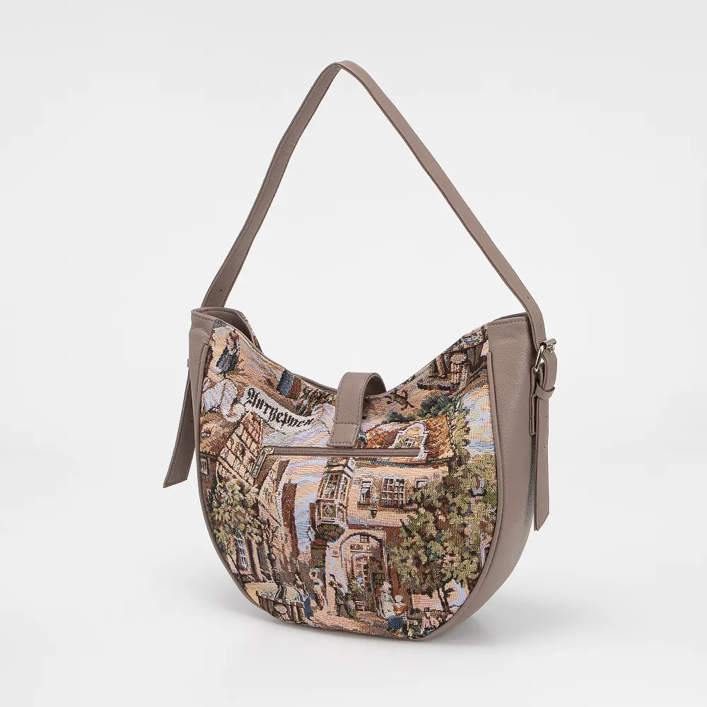 Сумка от торговой марки Passo Avanti из текстильного материала в сочетании с искусственной кожей кофейного цвета. Модель с удлиненной ручкой. Отделение на молнии, дополнительно закрывается хлястиком на повортоном замке. Внутри: текстильная подкладка, накладной карман, карман на молнии. На задней стороне - карман на молнии.