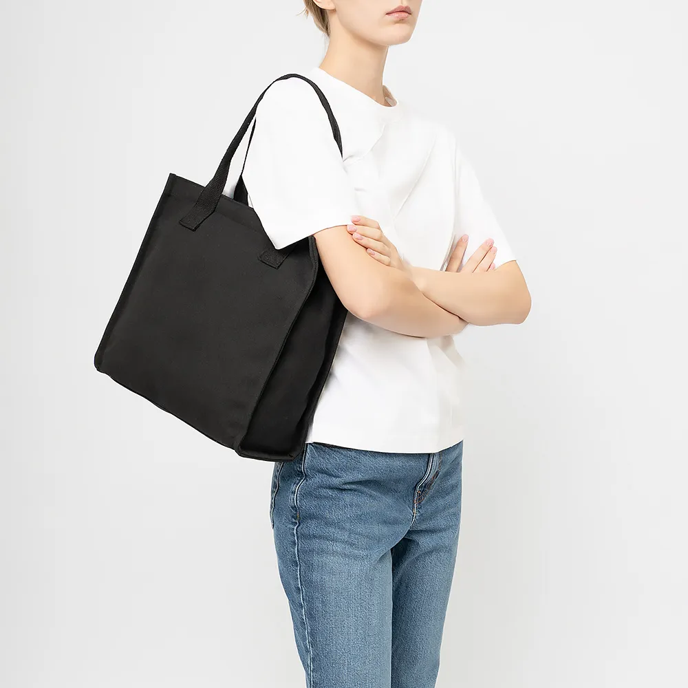Сумка-шоппер от торговой марки Ecotope из плотного текстильного материала черного цвета. Модель с двумя ручками. Отделение на молнии. Внутри: накладной карман.