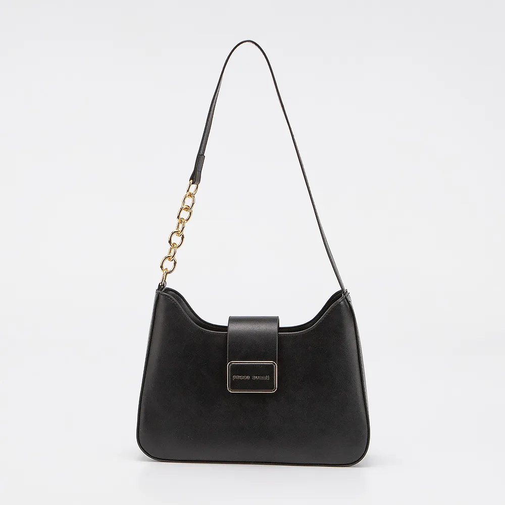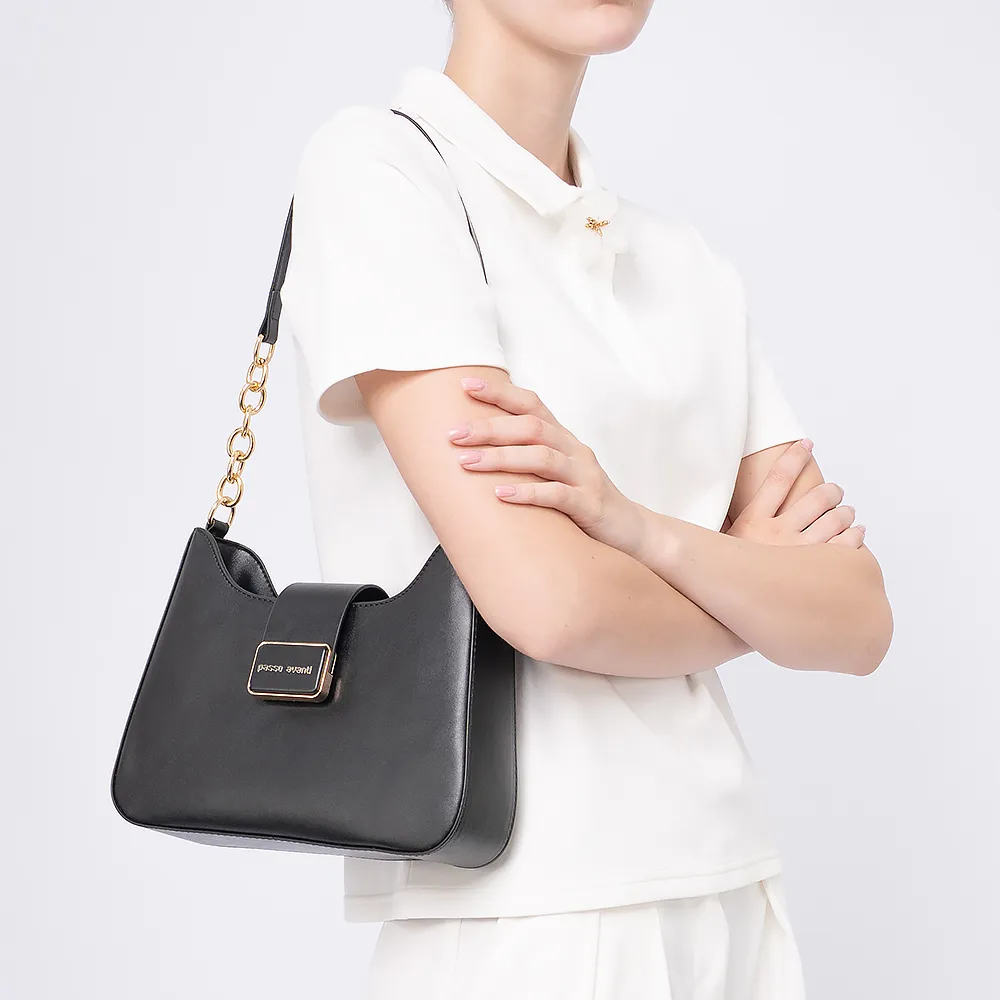 Сумка от торговой марки Passo Avanti выполнена из искусственной кожи черного цвета. Модель с длинной ручкой-цепочкой. Отделение на молнии, дополнительно фиксируется клапаном на магнитной кнопке. Внутри: текстильная подкладка, карман на молнии, накладной карман.