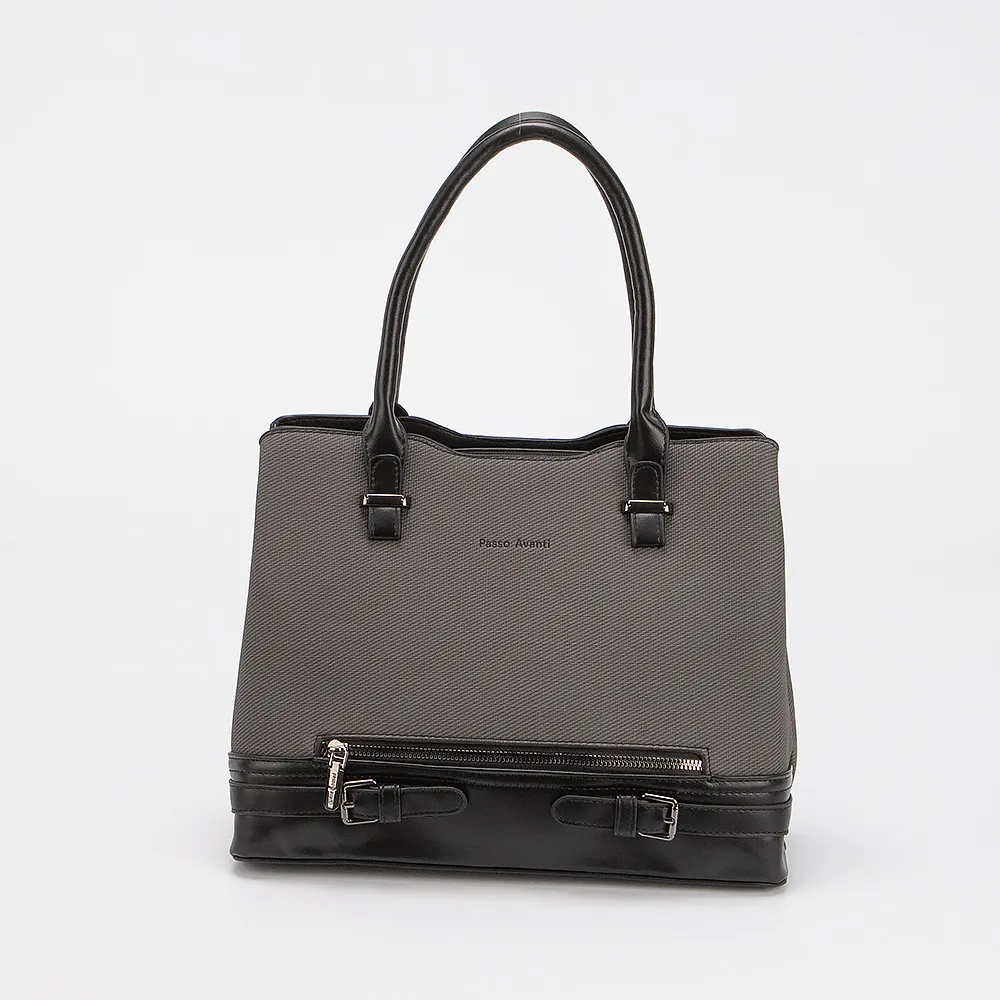 Сумка от торговой марки Passo Avanti выполнена из искусственной кожи черного цвета. Модель с двумя удлиненными ручками. Декорирована ремешками. Отделение на молнии. Внутри: текстильная подкладка. С лицевой стороны карман на молнии.