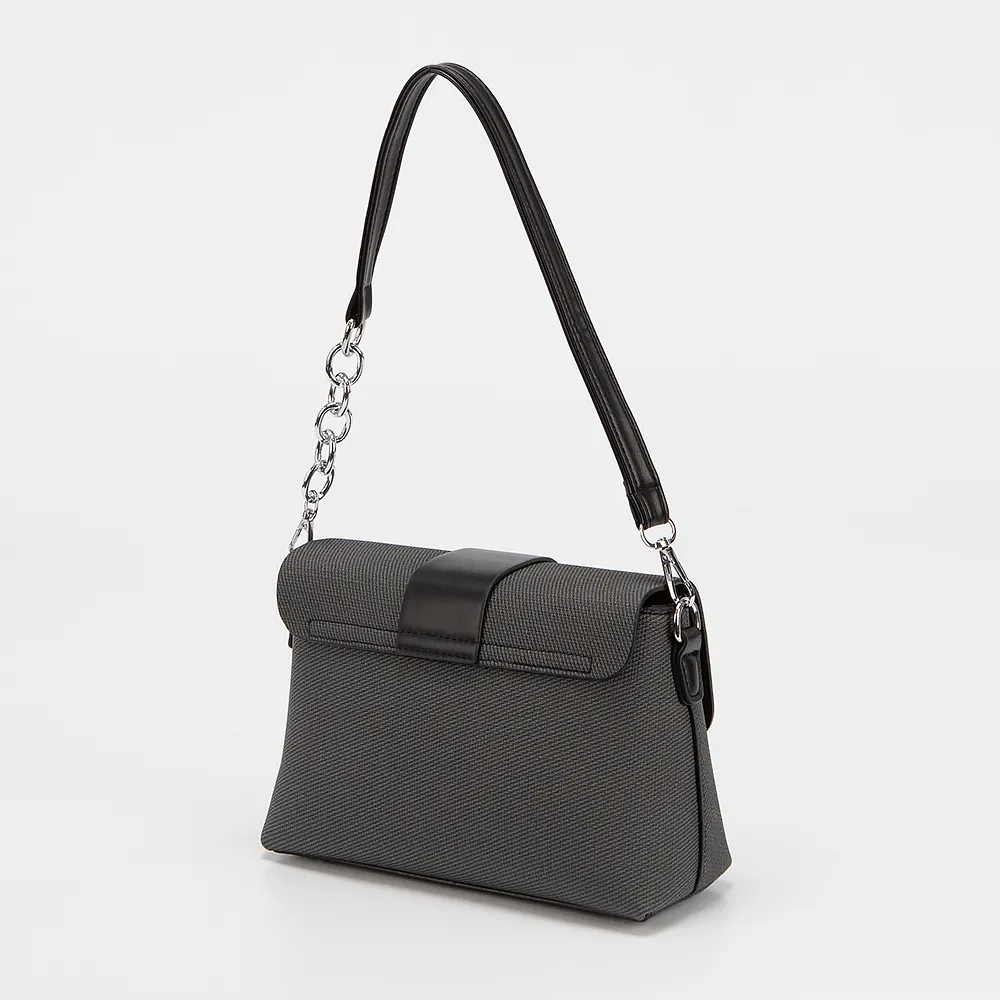 Сумка от торговой марки Passo Avanti из искусственной кожи черного цвета. Модель с длинной съемной ручкой. Клапан на магнитной кнопке закрывает отделение на молнии. Внутри текстильная подкладка. Дно оснащено металлическими ножками для защиты от износа.