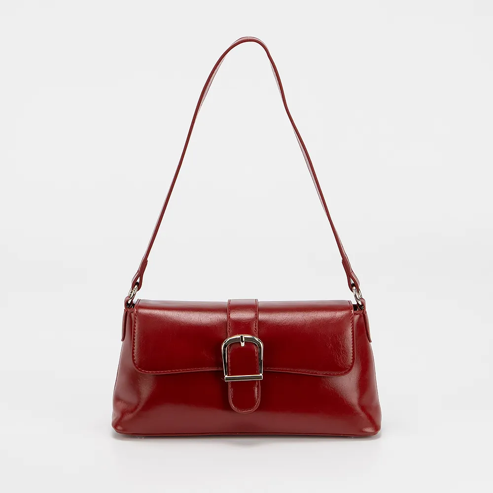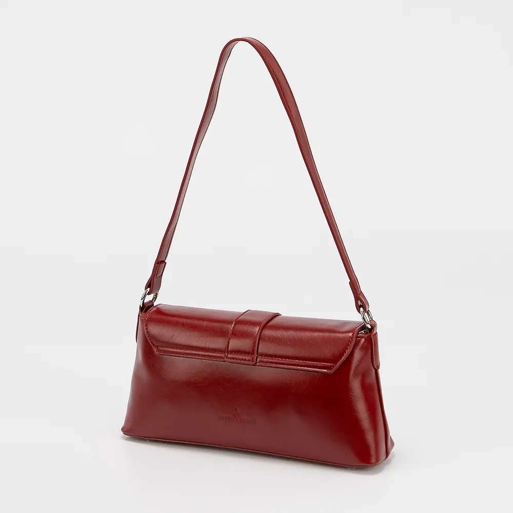 Сумка от торговой марки Passo Avanti из искусственной кожи красного цвета. Модель с длинной ручкой и съемным регулируемым плечевым ремнем. Клапан на магнитной кнопке закрывает отделение на молнии. Внутри текстильная подкладка, карман на молнии, накладной карман. Дно оснащено металлическими ножками для защиты от износа.