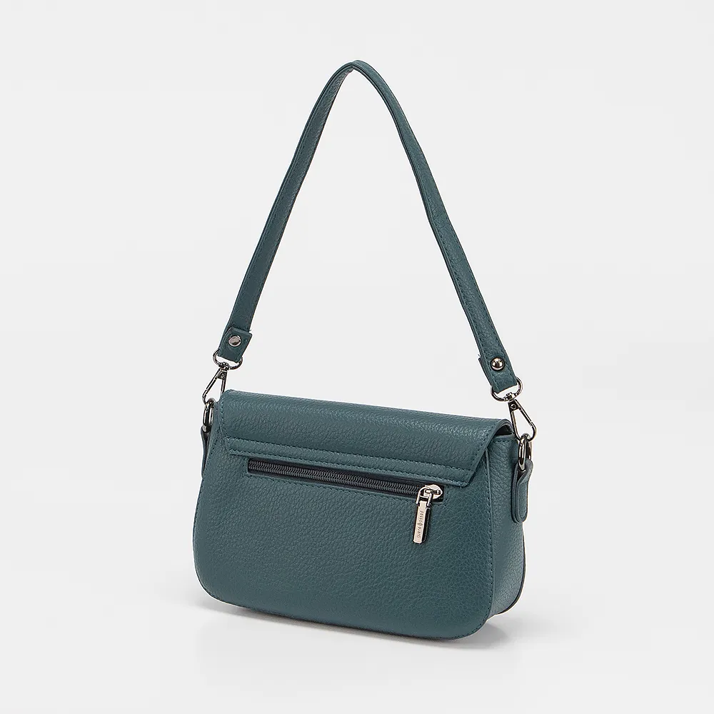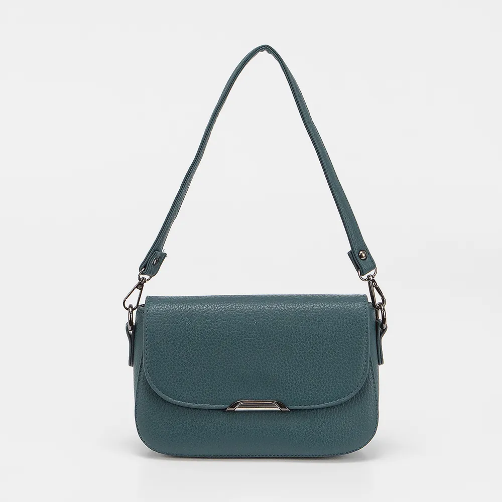 Сумка от торговой марки Passo Avanti из искусственной кожи бирюзового цвета. Модель с длинной съемной ручкой и съемным регулируемым плечевым ремнем. Клапан на магнитной кнопке закрывает отделение на молнии. Внутри: текстильная подкладка, карман и средник на молнии, накладной карман. С задней стороны - карман на молнии.