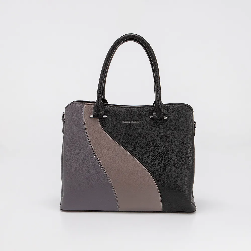 Сумка от торговой марки Passo Avanti выполнена из искусственной кожи черного цвета с контрастными вставками. Модель с двумя ручками и съемным регулируемым плечевым ремнем. Отделение на молнии. Внутри: три отсека, текстильная подкладка, карман на молнии, накладной карман. С задней стороны - карман на молнии. Дно оснащено металлическими ножками для защиты от износа.