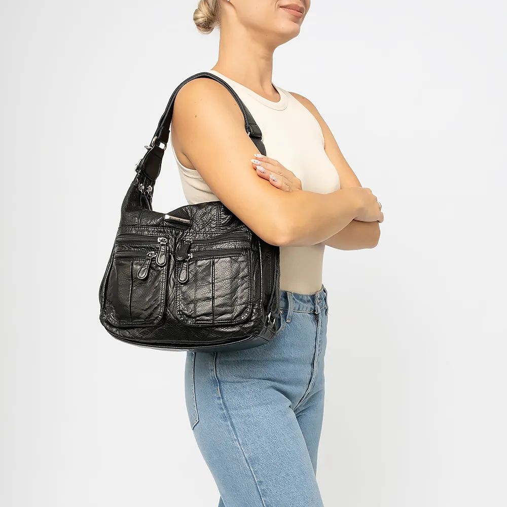 Сумка-рюкзак от торговой марки Passo Avanti выполнен из искусственной кожи черного цвета. Модель с удлиненной ручкой, которая стягивается в плечевые лямки. Отделение на молнии. Внутри: текстильная подкладка. С лицевой стороны четыре кармана на молнии.