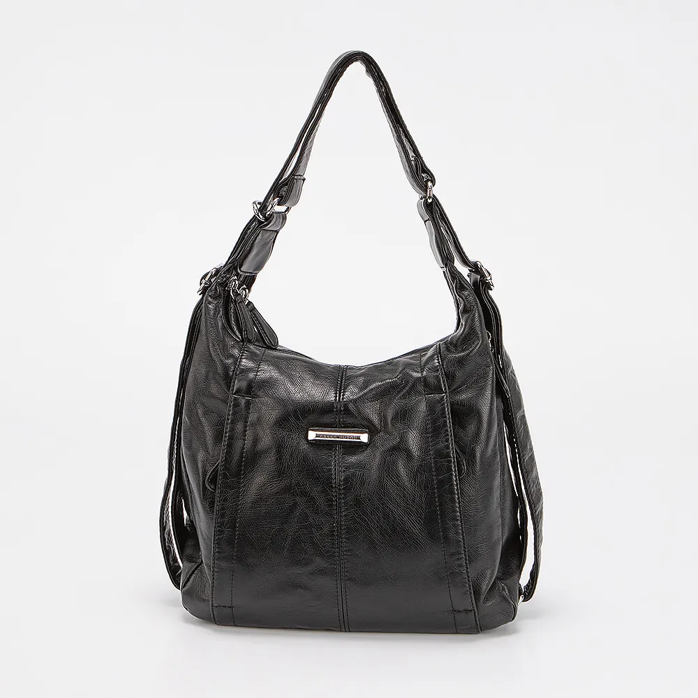 Сумка-рюкзак от торговой марки Passo Avanti выполнен из искусственной кожи черного цвета. Модель с удлиненной ручкой, которая стягивается в плечевые лямки. Два отделения на молнии. Внутри: текстильная подкладка. С лицевой стороны два кармана на молнии.