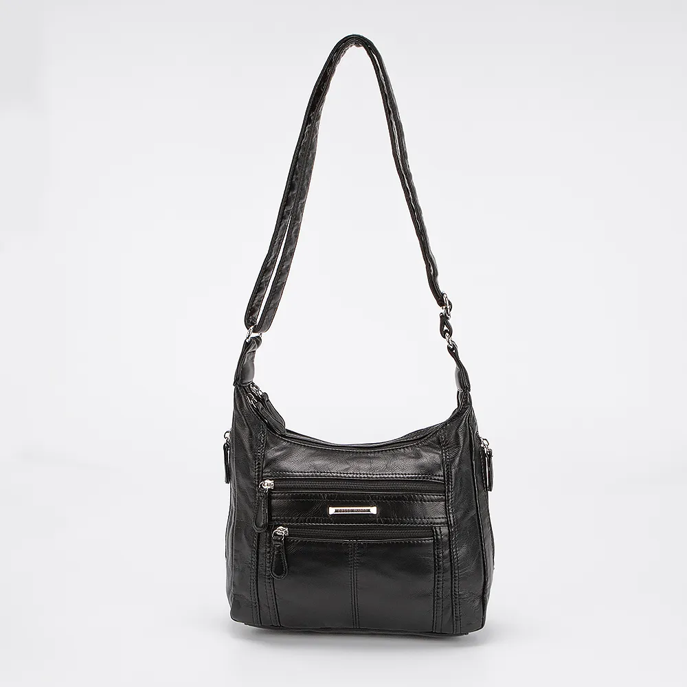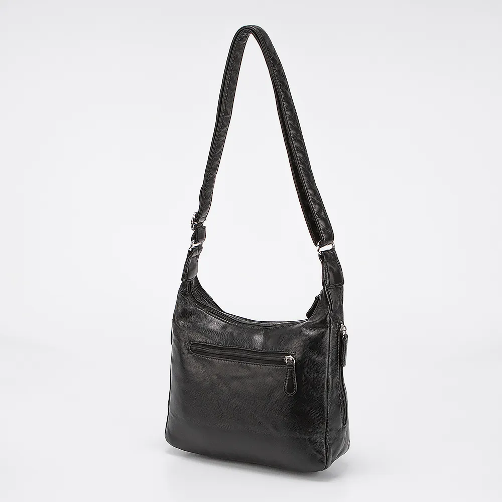 Сумка от торговой марки Passo Avanti выполнена из искусственной кожи черного цвета. Модель с длинным регулируемым плечевым ремнем. Отделение на молнии. Внутри: текстильная подкладка. С лицевой стороны два кармана на молнии. Сбоку и с задней стороны - карман на молнии.