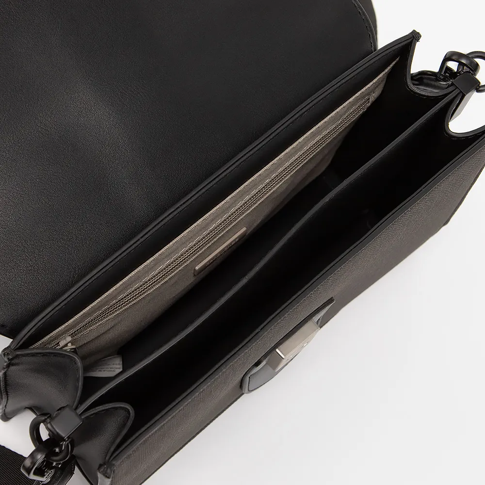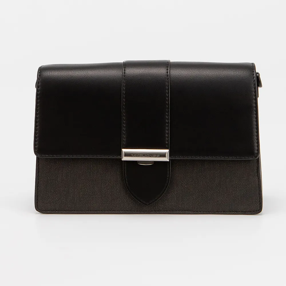 Сумка от торговой марки David Jones выполнена из искусственной кожи черного цвета. Модель со съемным регулируемым плечевым ремнем. Клапан на замке-защелке закрывает отделение с частичной подкладкой. Внутри: карман на молнии, плотный средник. На задней стороне - карман на молнии.