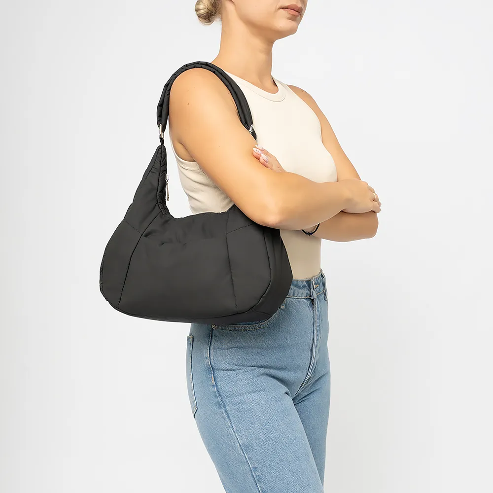 Сумка от торговой марки Passo Avanti выполнена из текстильного материала черного цвета. Модель с удлиненной ручкой. Отделение на молнии. Внутри: текстильная подкладка.