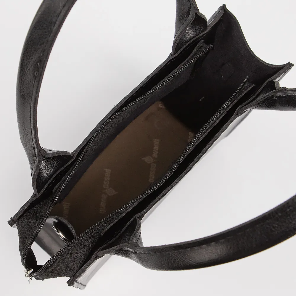 Сумка от торговой марки Passo Avanti выполнена из искусственной кожи черного цвета. Модель с двумя ручками и длинным регулируемым плечевым ремнем. Отделение на молнии. Внутри: текстильная подкладка, карман на молнии, накладной карман.