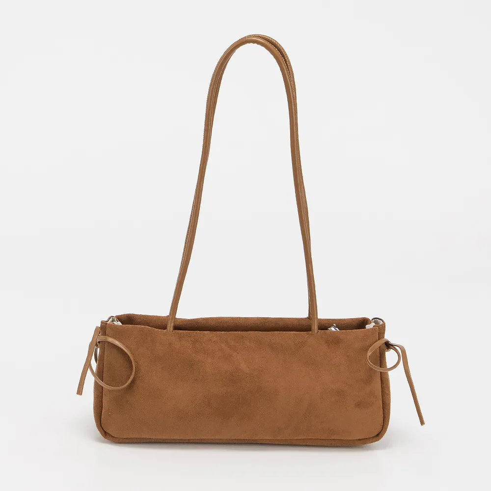 Сумка от торговой марки Valigetti выполнена из искусственной замши. Модель горизонтальной ориентации с двумя длинными ручками. Отделение на молнии с текстильной подкладкой.