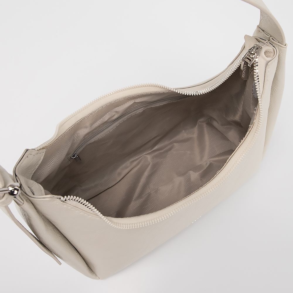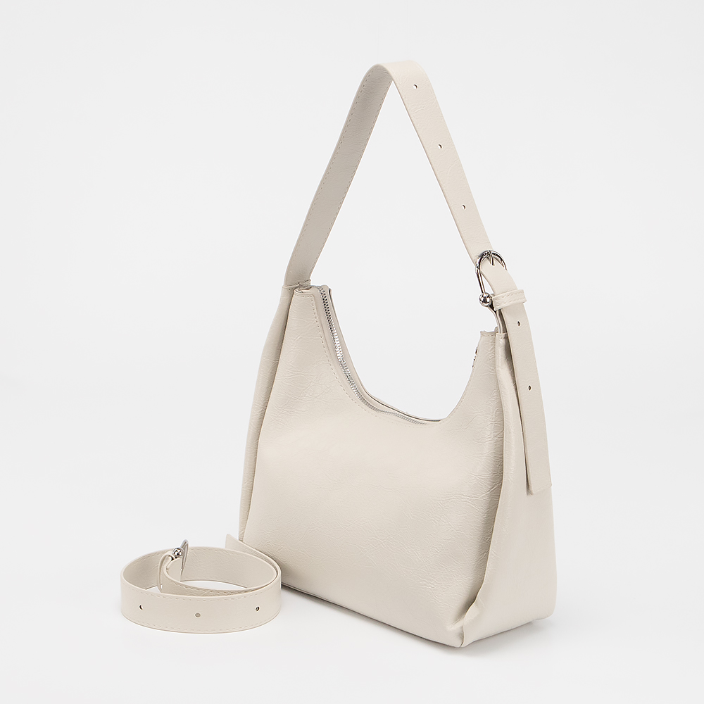 Сумка от торговой марки Valigetti выполнена из искусственной кожи серого цвета. Модель с удлиненной ручкой и дополнительным ремнем для увеличения длины ручки. Отделение на молнии. Внутри: текстильная подкладка, карман на молнии, накладной карман.