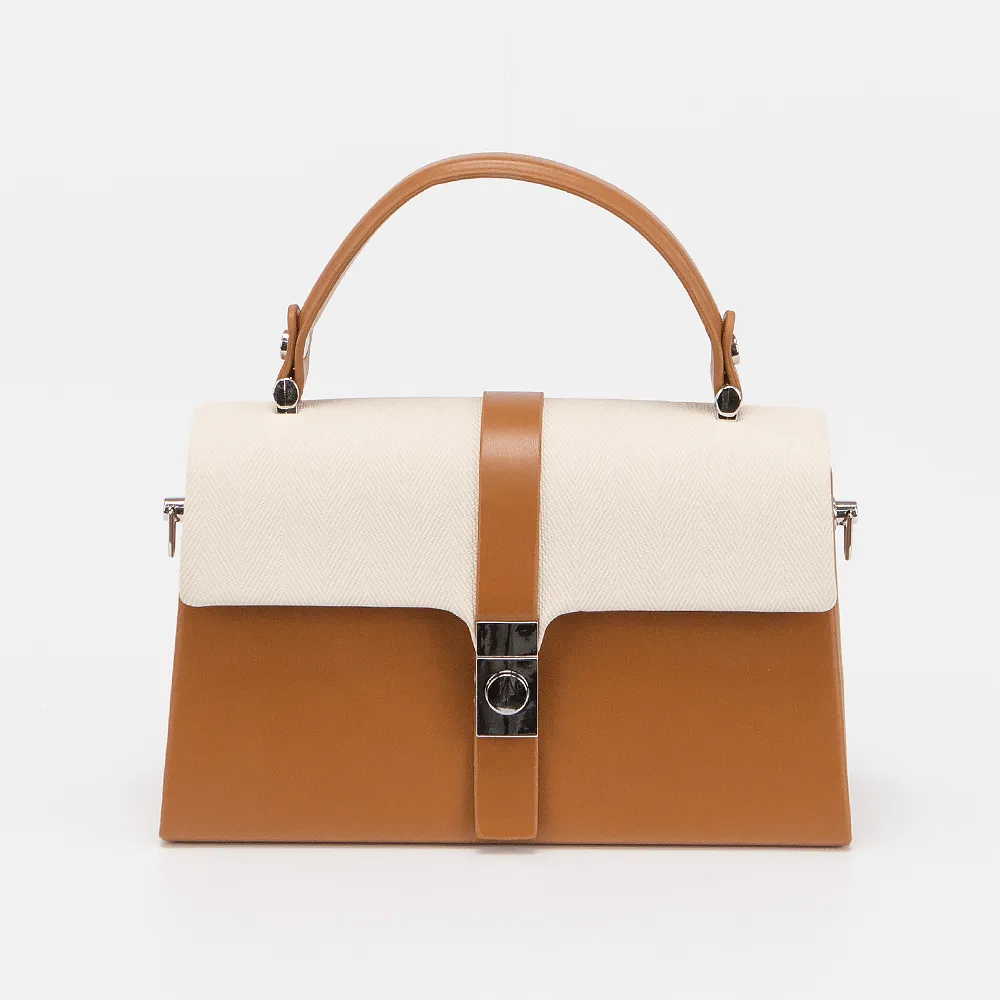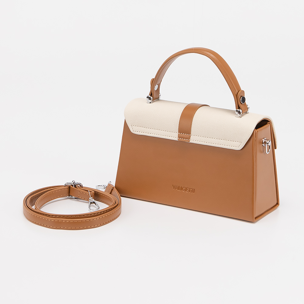 Сумка от торговой марки Valigetti выполнена из искусственной кожи в сочетании двух цветов. Компактная модель с ручкой и длинным регулируемым плечевым ремнем. Клапан на магнитной кнопке закрывает отделение без застежки. Внутри: текстильная подкладка.