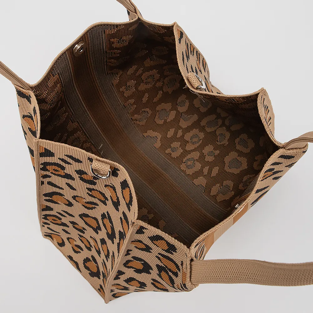 Сумка от торговой марки Valigetti выполнена из плотного текстильного материала с леопардовым принтом. Модель с удлиненными ручками и съемным плечевым ремнем. Отделение на магнитной кнопке. Без подкладки.