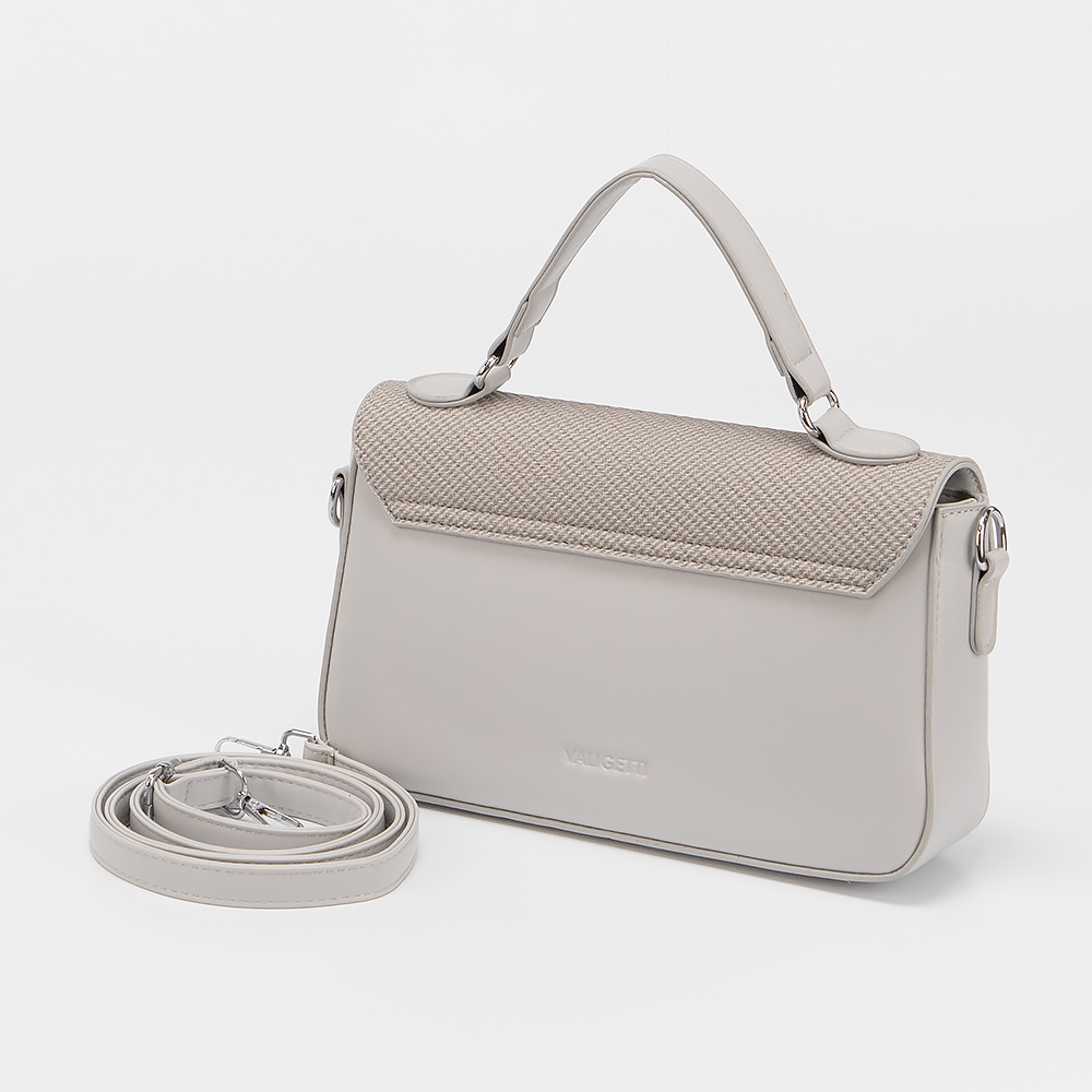 Сумка от торговой марки Valigetti выполнена из искусственной кожи серого цвета. Модель с ручкой и съемным регулируемым плечевым ремнем. Декорирована оригинальной металлической пряжкой. Клапан на магнитных кнопках закрывает отделение на молнии. Внутри: текстильная подкладка, карман на молнии, накладной карман.