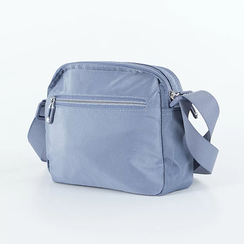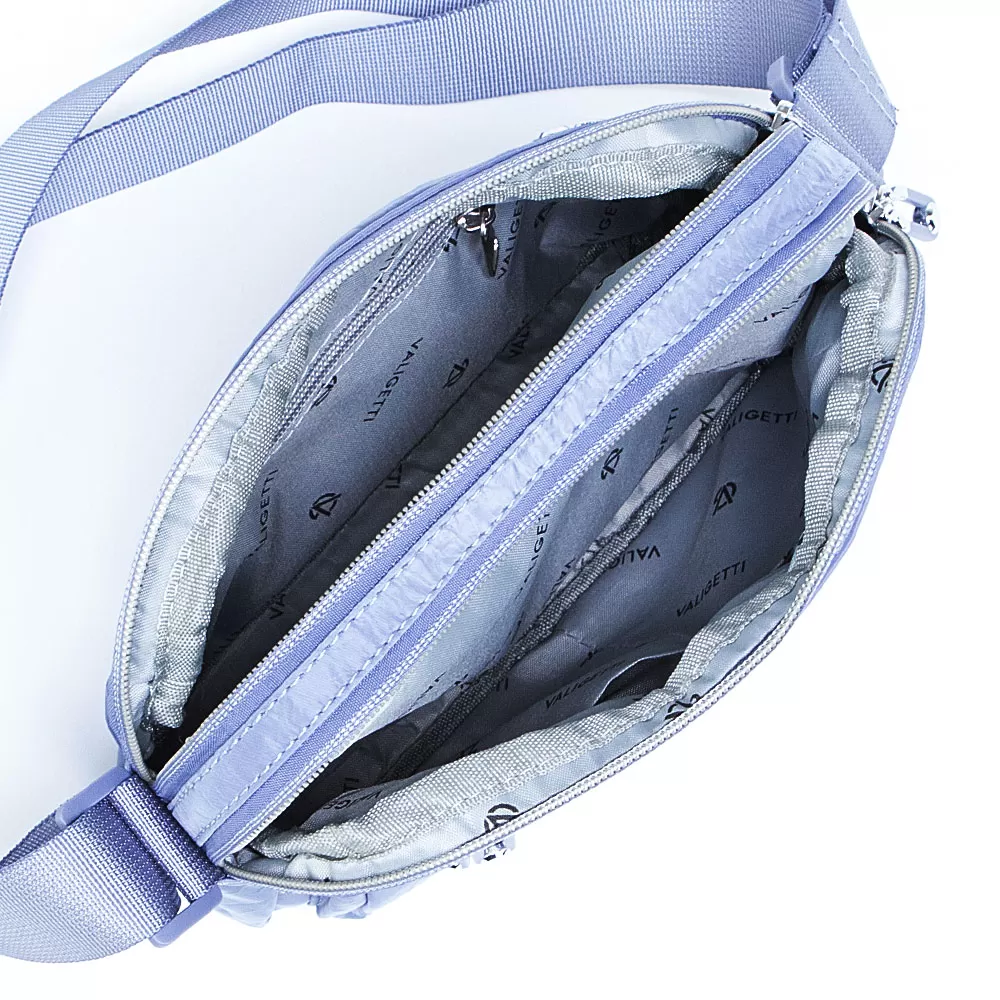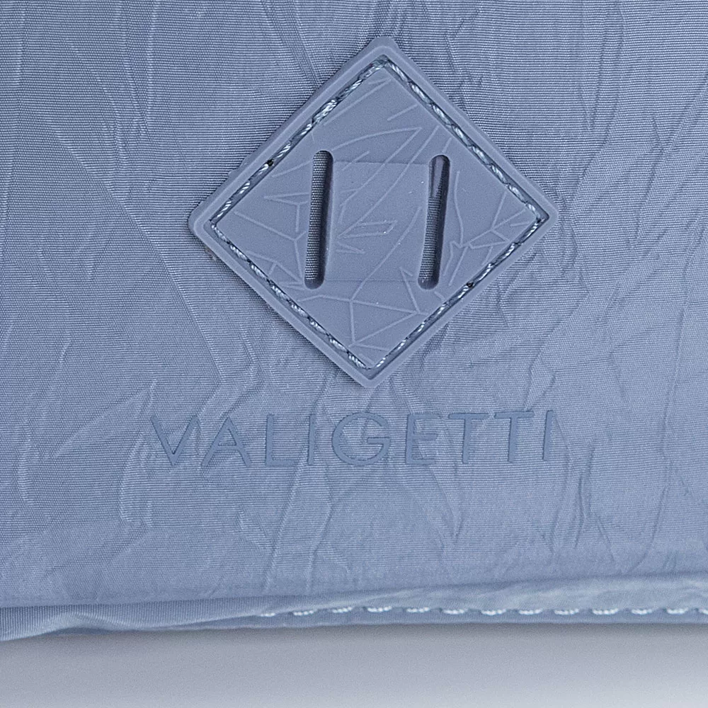 Компактная сумка-планшет бренда Valigetti выполнена в голубом цвете. Сумка оснащена несъемным регулируемым плечевым ремнем и тремя внешними карманами быстрого доступа на молнии с металлической фурнитурой - два спереди и один сзади. У сумки есть два основных отделения на молнии, внутри одного из которых потайной карман на молнии, а в другом - два накладных кармана для мелочей.