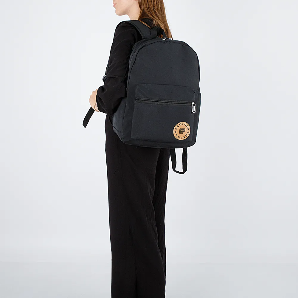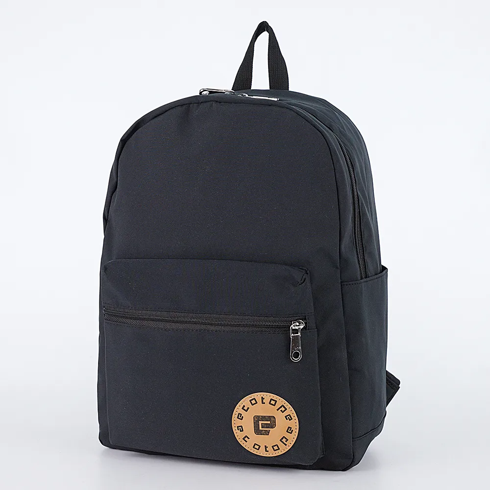 Стильный городской рюкзак от торговой марки Ecotope выполнен из мягкой приятной на ощупь плотной текстильной ткани черного цвета. Мо дель с лямкой-переноской и широкими плечевыми лямками. Отделение на скрытой молнии, с текстильной подкладкой. Внутри: накладной карман с уплотненной стенкой. По бокам – карман без застежки. На лицевой стороне –накладной карман на молнии с круглой нашивкой с названием бренда, на задней – удобный карман на молнии.