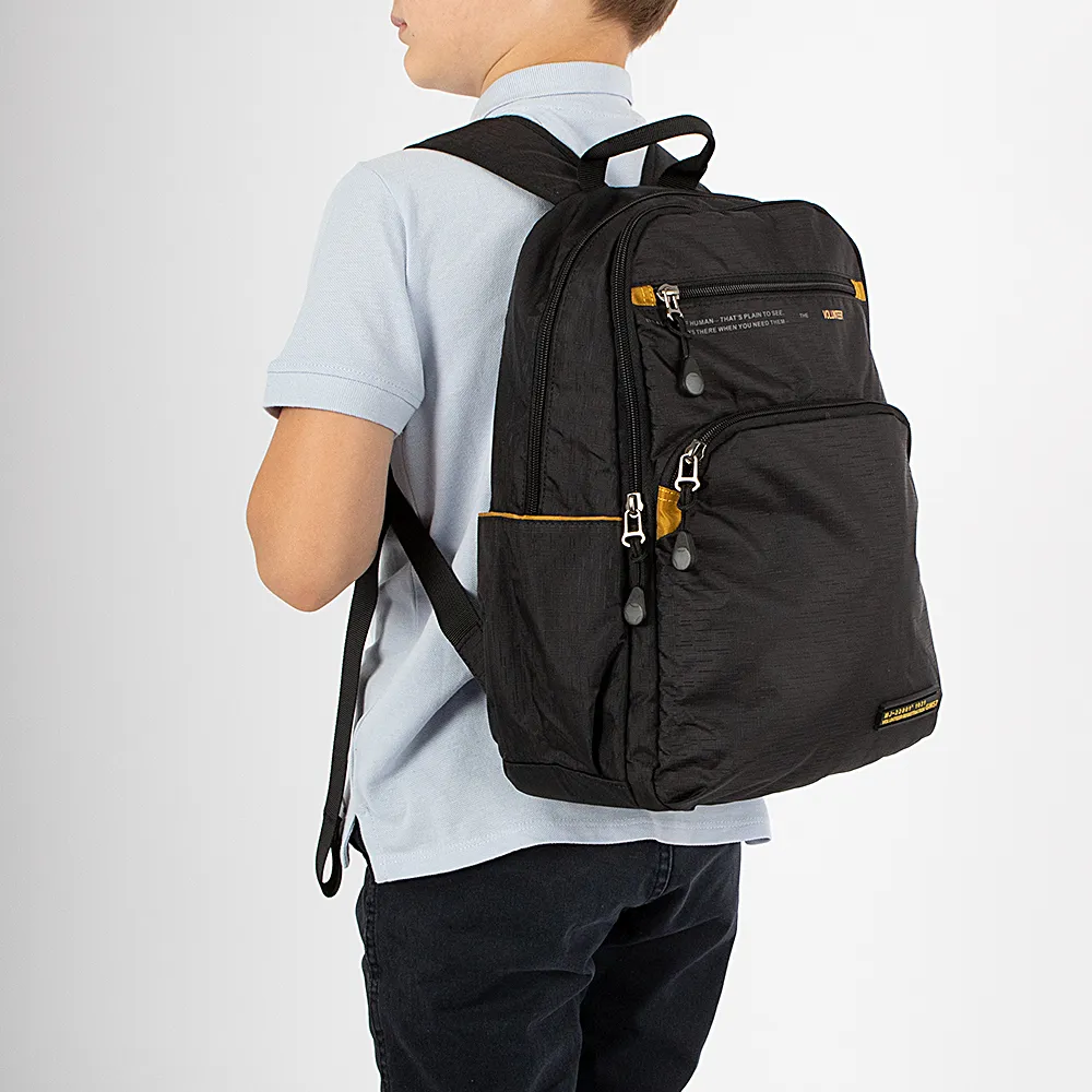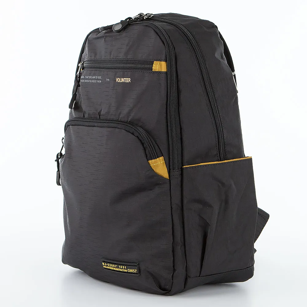 Рюкзак от торговой марки Volunteer из практичного прочного текстильного материала черного цвета. Модель с лямкой-переноской, регулируемыми плечевыми лямками с дышащим верхним слоем. Отделение на молнии. Внутри: текстильная подкладка, карман на молнии, карман с уплотненной стенкой, два накладных кармана. На лицевой стороне – два кармана на молнии. На задней стороне – карман на молнии. По бокам – карман без застежки.