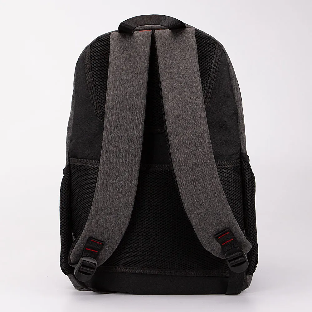 Рюкзак от торговой марки Ecotope из практичного текстильного материала меланжевого серого цвета. Модель с мягкой набивной ручкой, лямкой, широкими регулируемыми плечевыми лямками с дышащим сетчатым слоем. На спинке имеется накладной карман без застежки. Отделение на молнии. Внутри: текстильная подкладка, накладной карман с уплотненной стенкой для ноутбука. На лицевой стороне – два кармана на молнии. По бокам – карман-сетка. Сбоку имеется USB-порт.