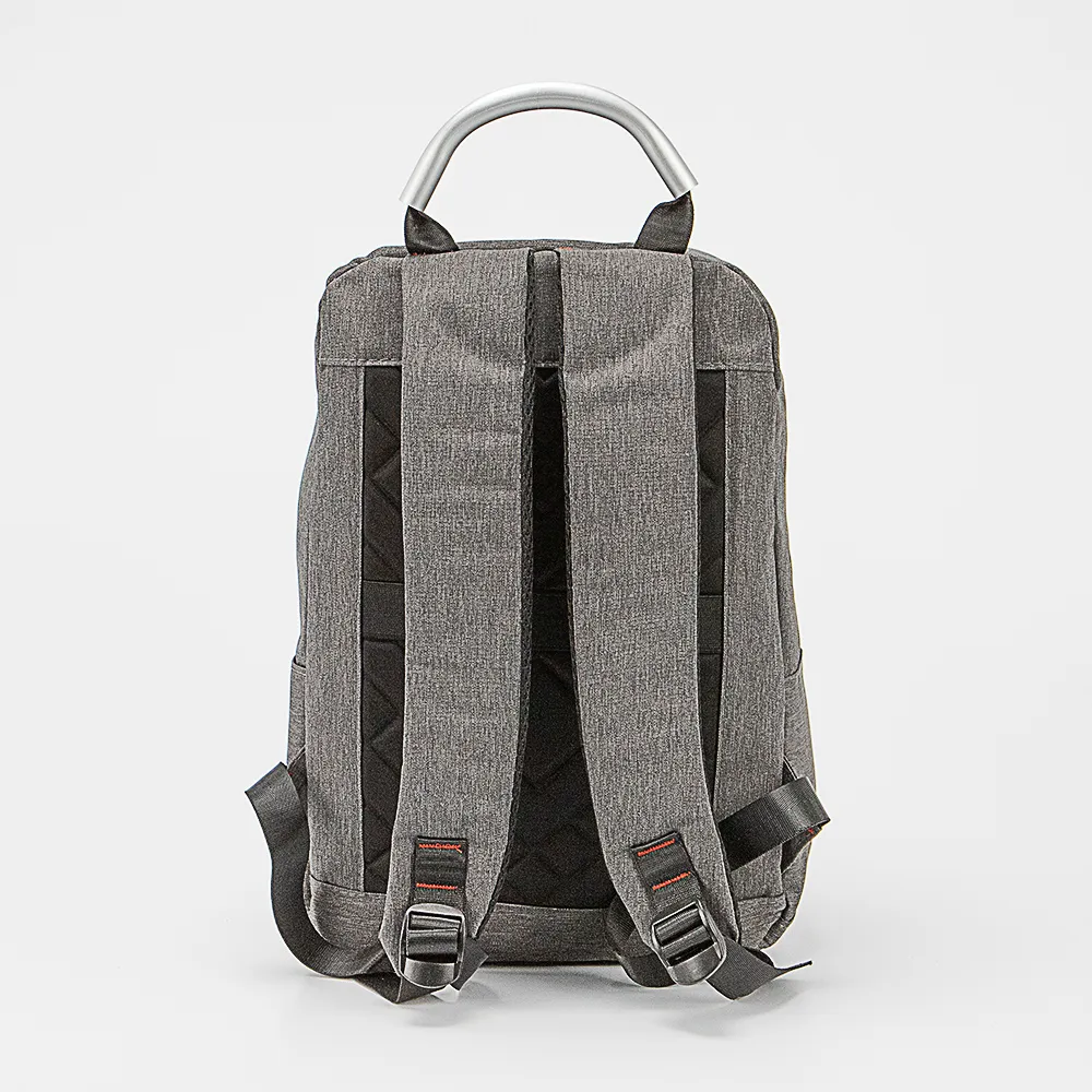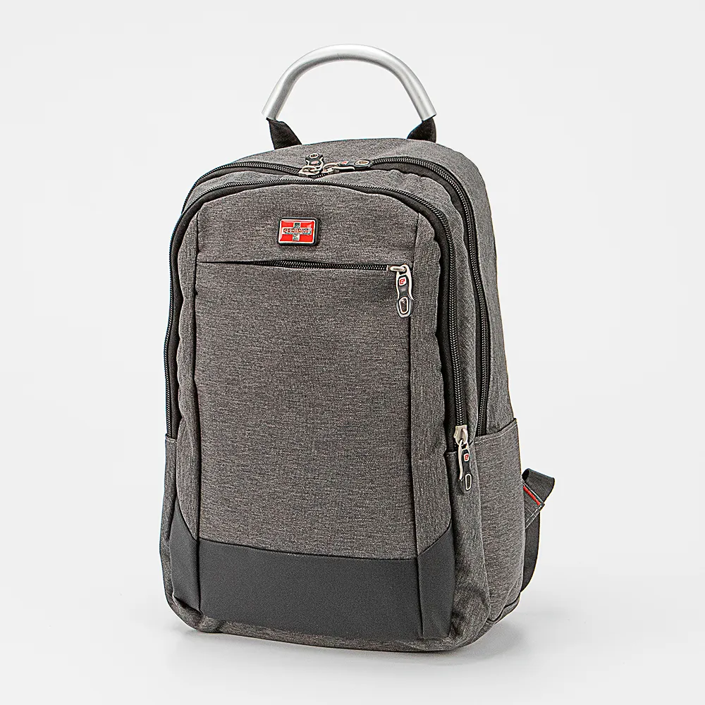 Рюкзак от торговой марки Ecotope из практичного текстильного материала серого цвета и вставкой из искусственной кожи. Модель с одной ручкой, усиленной алюминиевой трубкой, широкими набивными регулируемыми плечевыми лямками. Уплотненная спинка с анатомической вставкой и лямкой для крепления на выдвижную ручку чемодана. Отделение на молнии. Внутри: текстильная подкладка, карман с уплотненной стенкой. На лицевой стороне – вместительный карман на молнии и карман на скрытой молнии. Сбоку – накладной карман без застежки.