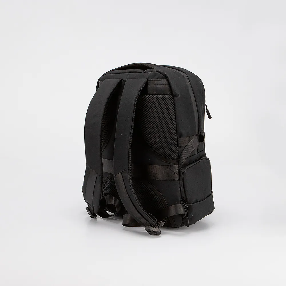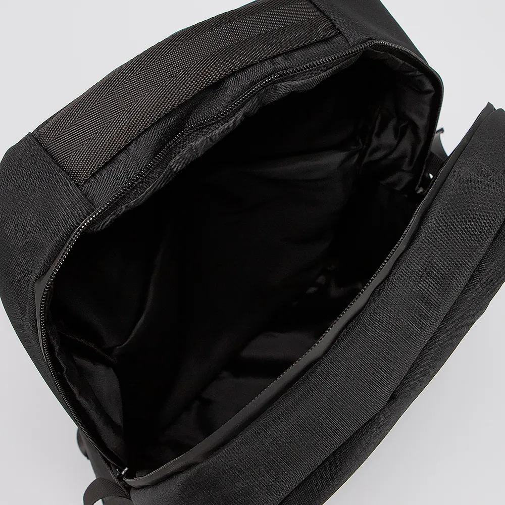 Рюкзак от торговой марки Valigetti выполнен из плотного текстильного материала черного цвета. Модель с ручкой для переноски и регулируемыми плечевыми ремнями. Отделение на молнии, дополнительно фиксируется ремешками на застежке фастекс по бокам. Внутри: вместительный накладной карман, карман на молнии. На лицевой стороне - карман на молнии. По бокам - объемный карман на молнии. На задней стороне - лямка для крепления на выдвижную ручку чемодана.