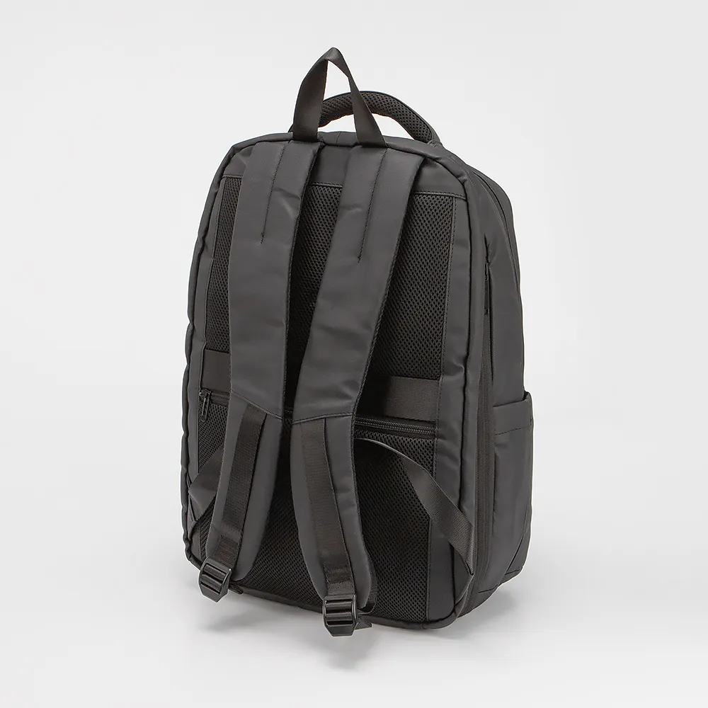 Рюкзак от торговой марки Francesco Molinary выполнен из плотного практичного текстильного материала черного цвета. Модель с ручкой, лямкой и регулируемыми плечевыми ремнями. Отделение на молнии. Внутри: текстильная подкладка. С лицевой стороны - два кармана на молнии. По бокам - карман без застежки. На задней стороне - лямка для крепления на выдвижную ручку чемодана и карман на молнии.